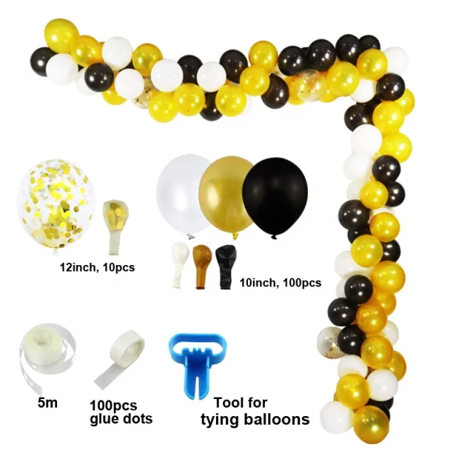 Arcada 90 baloane baloane alb, auriu si negru, cu baloane confetti