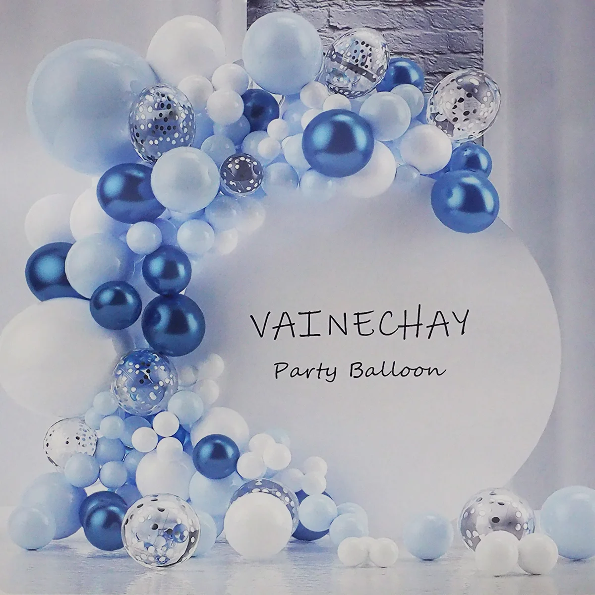 Arcada 96 baloane in nuante de albastru, alb cu confetti