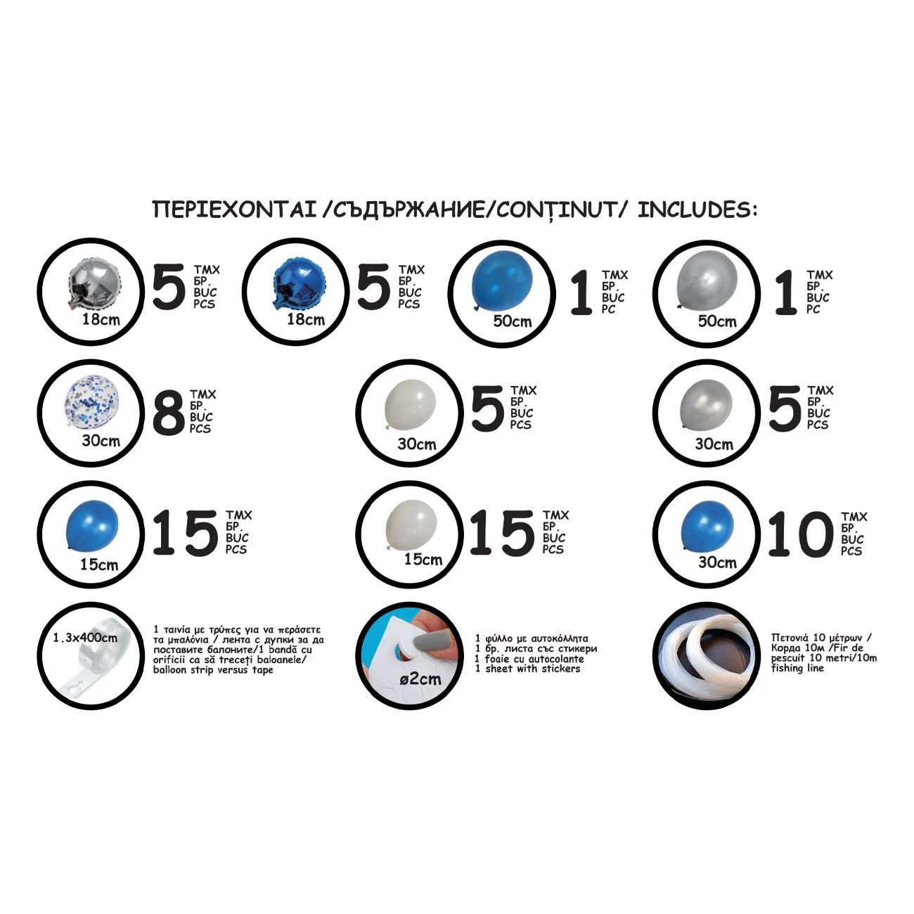 1 recenzie pentru Arcada baloane aniversare petrecere, culori albastru, alb, argintiu cu baloane confetti