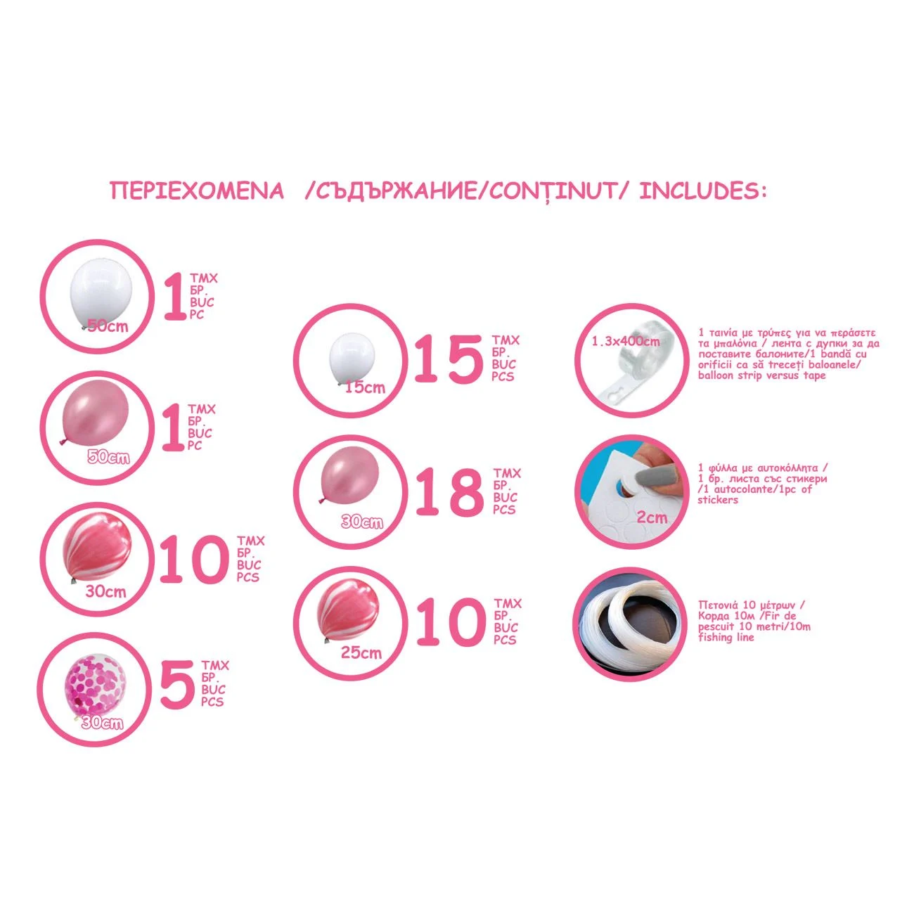 - Arcada baloane aniversare petrecere, culori roz si alb, cu baloane confetti