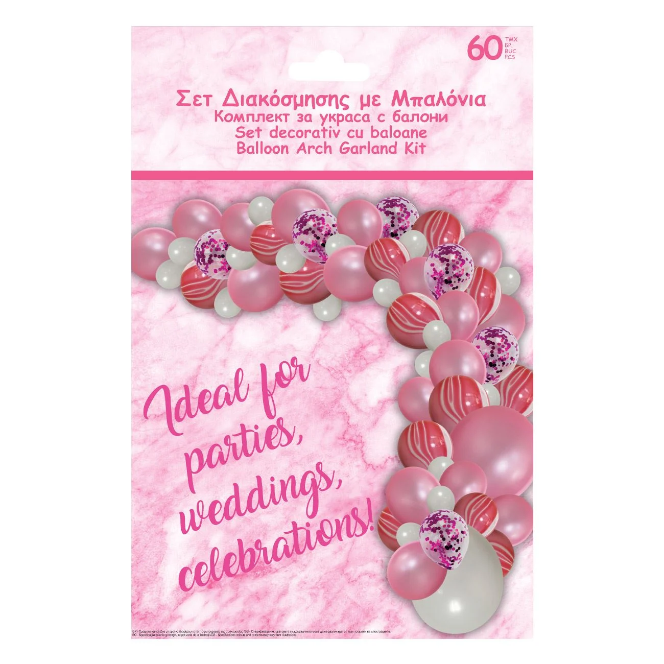 Arcada baloane aniversare petrecere, culori roz si alb, cu baloane confetti