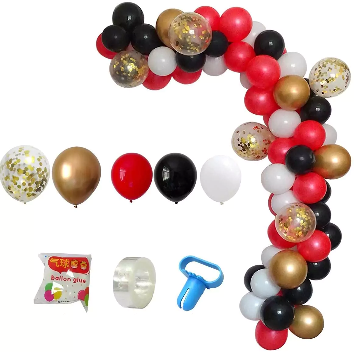 Arcada baloane in culori rosu, negru, alb, cu baloane confetti