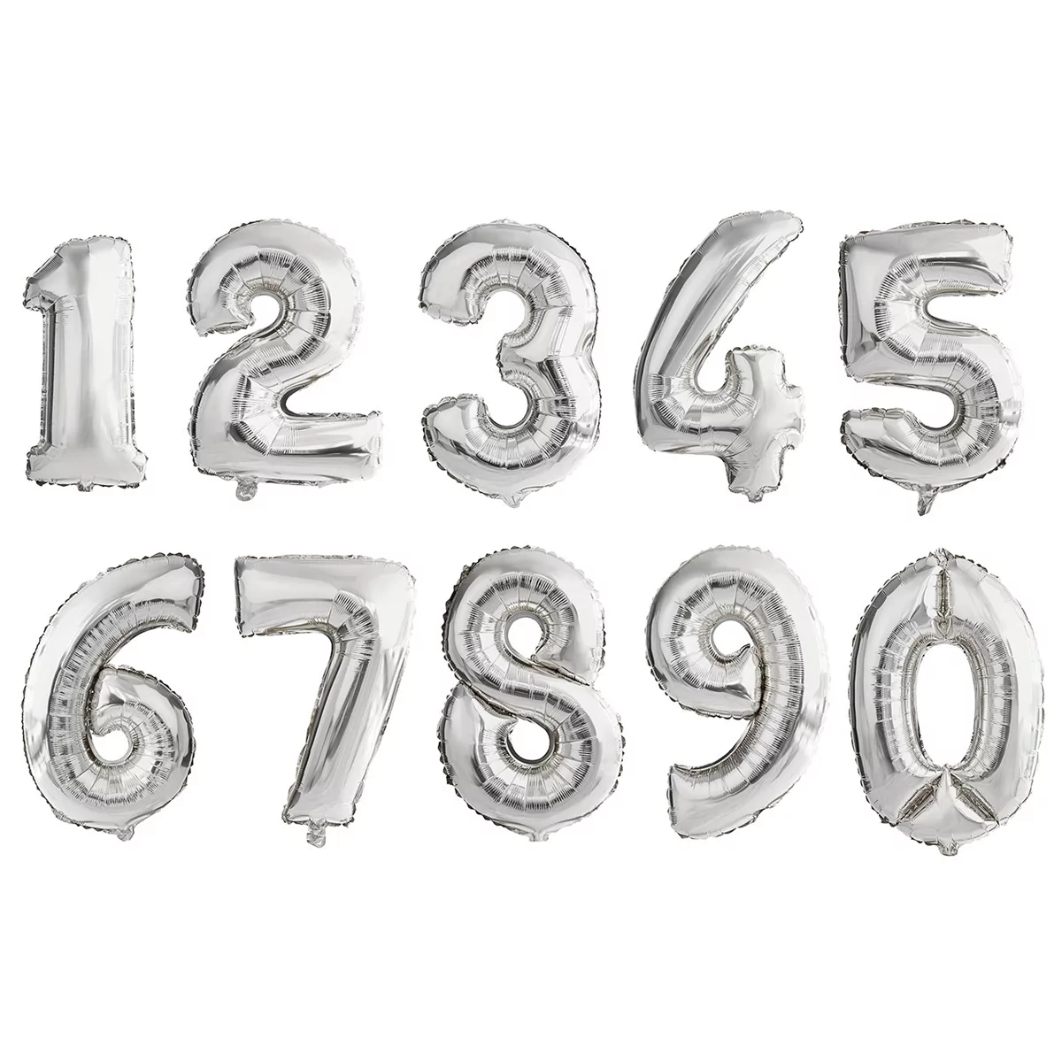 Baloane folie in forma de cifre 1, 2, 3, 4, 5, 6, 7, 8, 9, 0, Argintiu, 70 cm