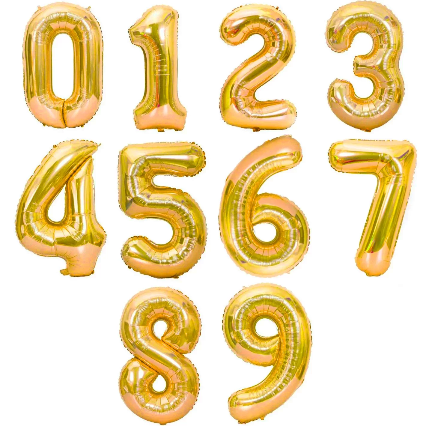 Baloane folie in forma de cifre 1, 2, 3, 4, 5, 6, 7, 8, 9, 0, Auriu, 40 cm