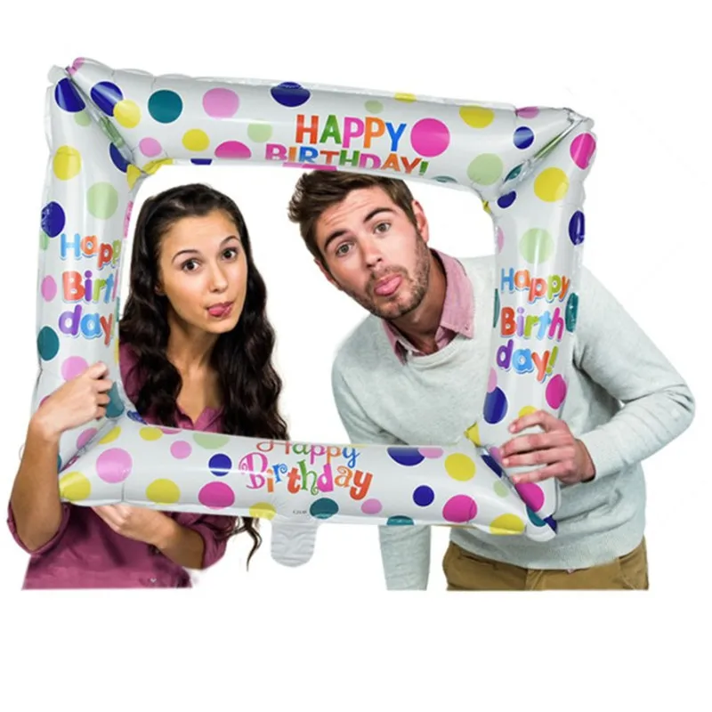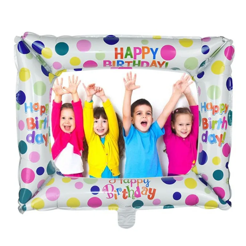 Balon folie figurina Rama Foto Happy Birthday cu bulinute multicolore 59 x 50 cm
