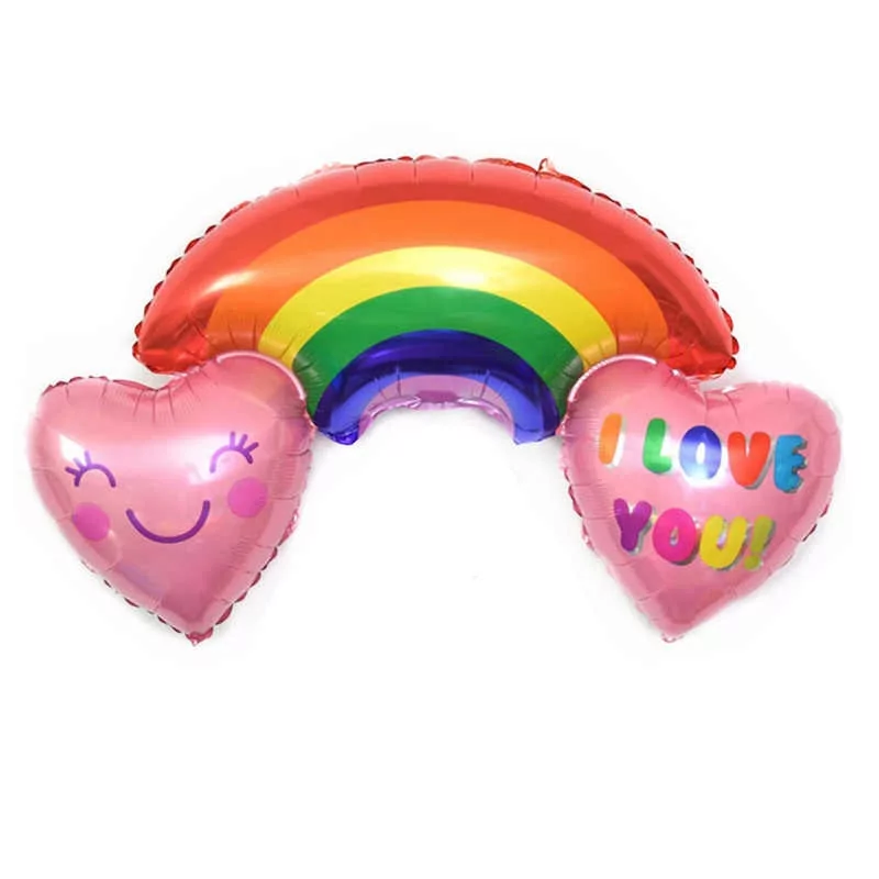 Balon in forma de curcubeu, cu 2 inimioare si mesaj I Love You, 90 cm