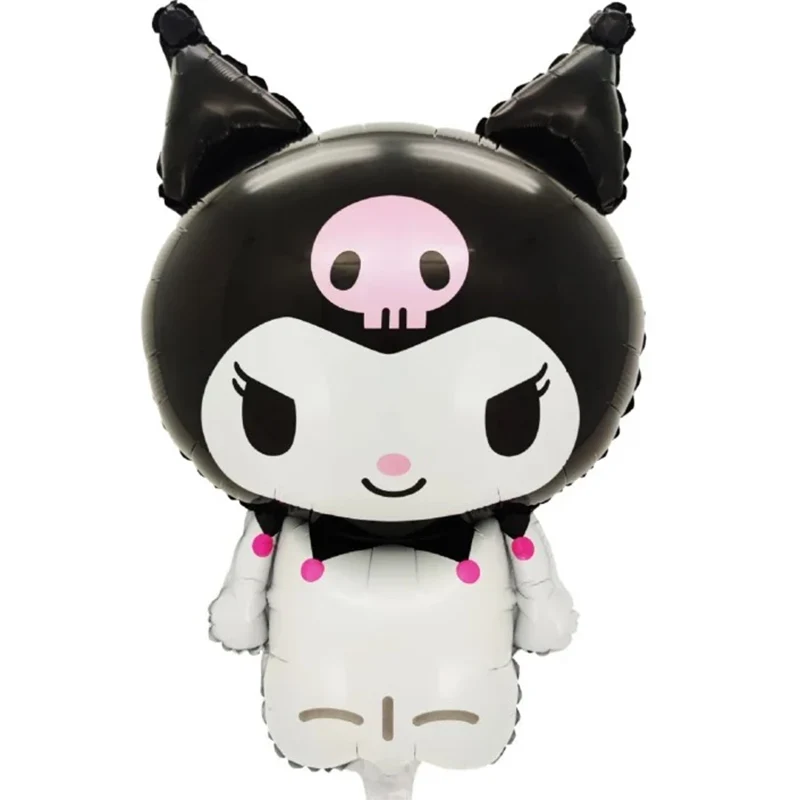 Poznă și Stil! Balon Kuromi Sanrio Uriaș, Seria Hello Kitty, Umflare cu Heliu sau Aer, Folie Mylar, Alb-Negru, 80 cm!