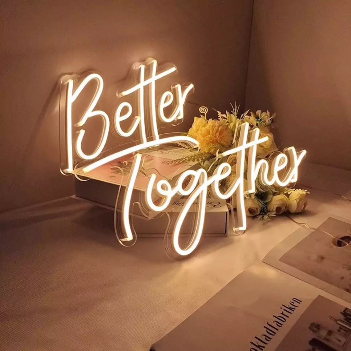 Banner luminos Led Neon BETTER TOGETHER, fundal transparent, 51 x 38 cm