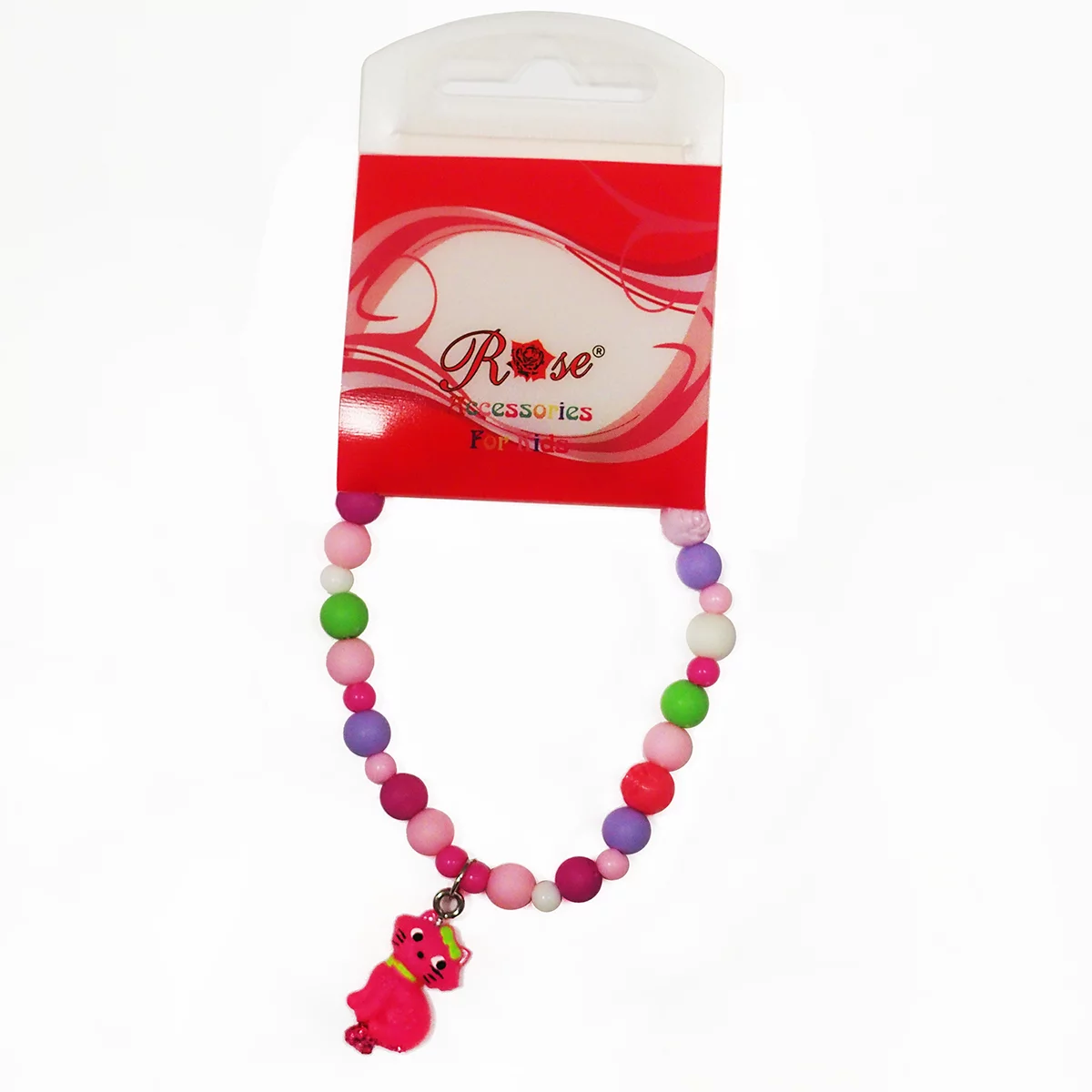 Bratara cu margelute multicolore si pisicuta