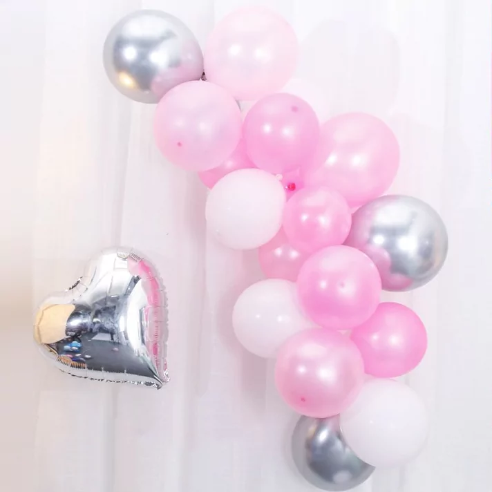 Ghirlanda 25 baloane roz, albe si argintii, cu inimioara argintie