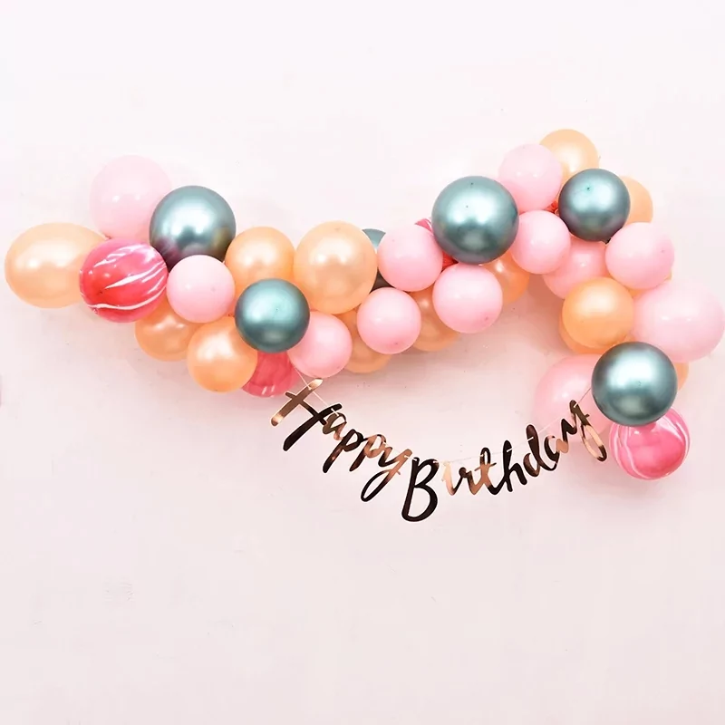 Ghirlanda cu 40 de baloane in culori roz, portocaliu, turcoaz, rosu, cu banner Happy Birthday