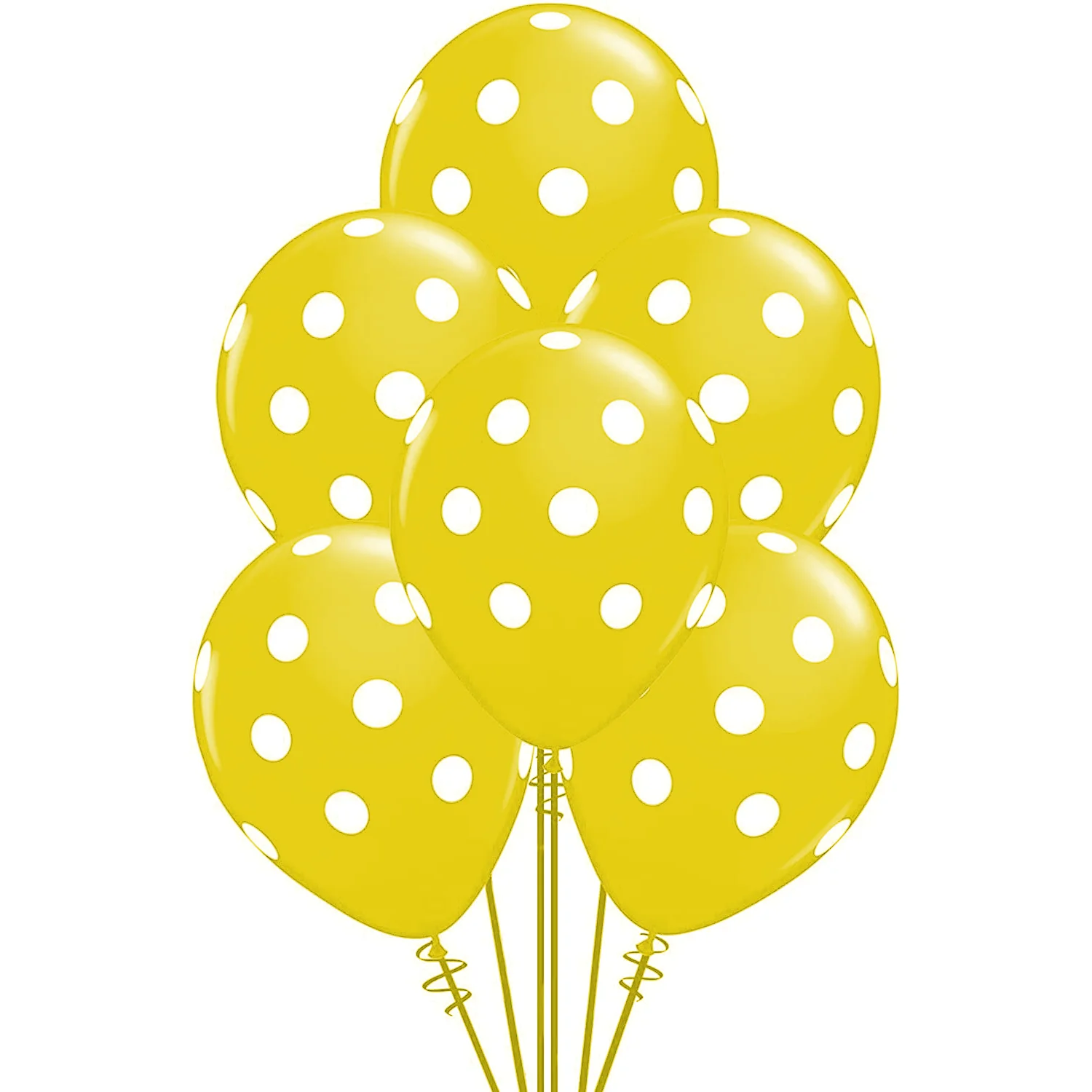 Set 10 baloane latex cu buline, galben cu buline albe, 30 cm