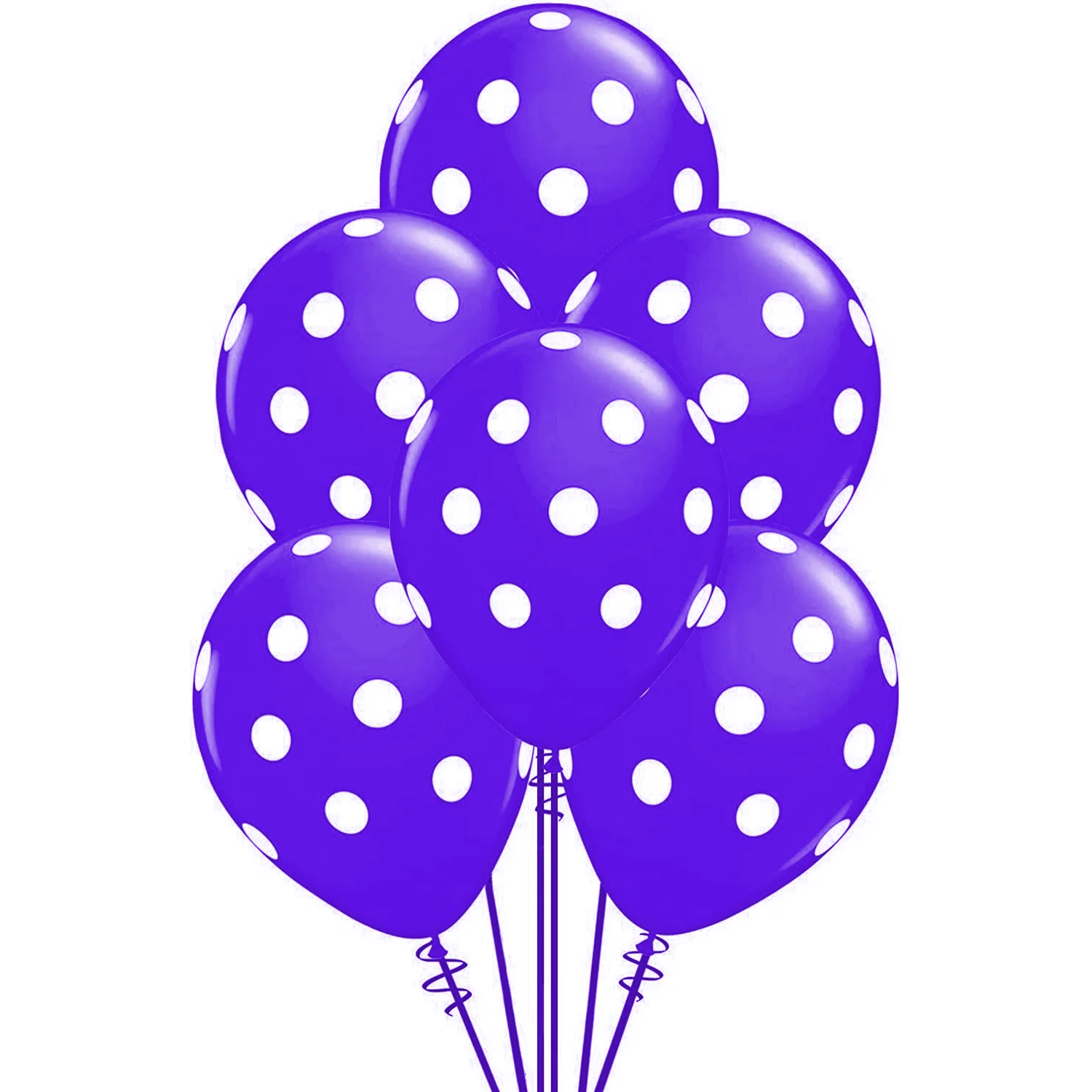 Set 10 baloane latex cu buline, mov cu buline albe, 30 cm