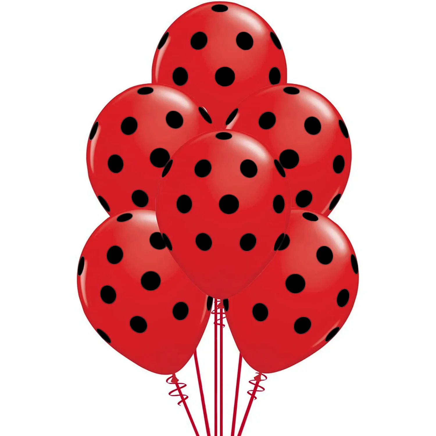 Set 10 baloane latex cu buline, rosu cu buline negre, 30 cm