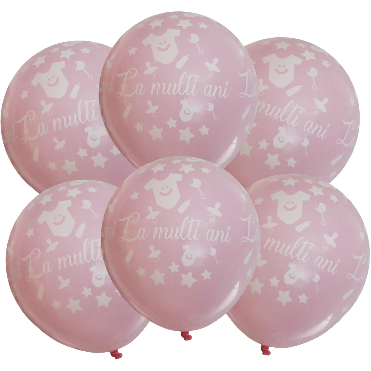 Set 10 baloane latex La Multi Ani, model Hainute, roz, 25 cm