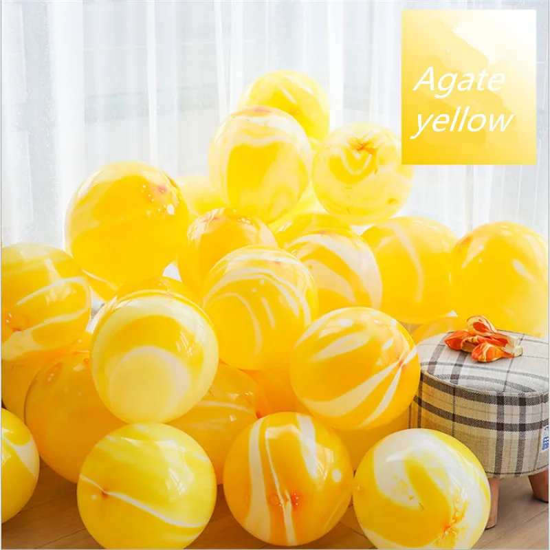 Set 10 baloane latex marmorate, Galben, 36 cm