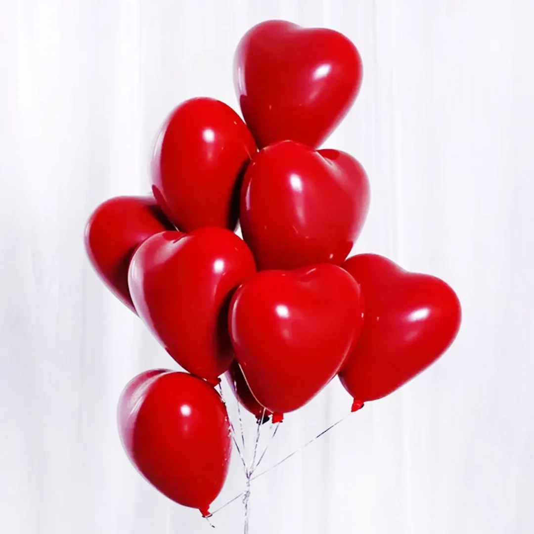 Set 6 baloane latex in forma de inima, culoare rosie, 30 cm