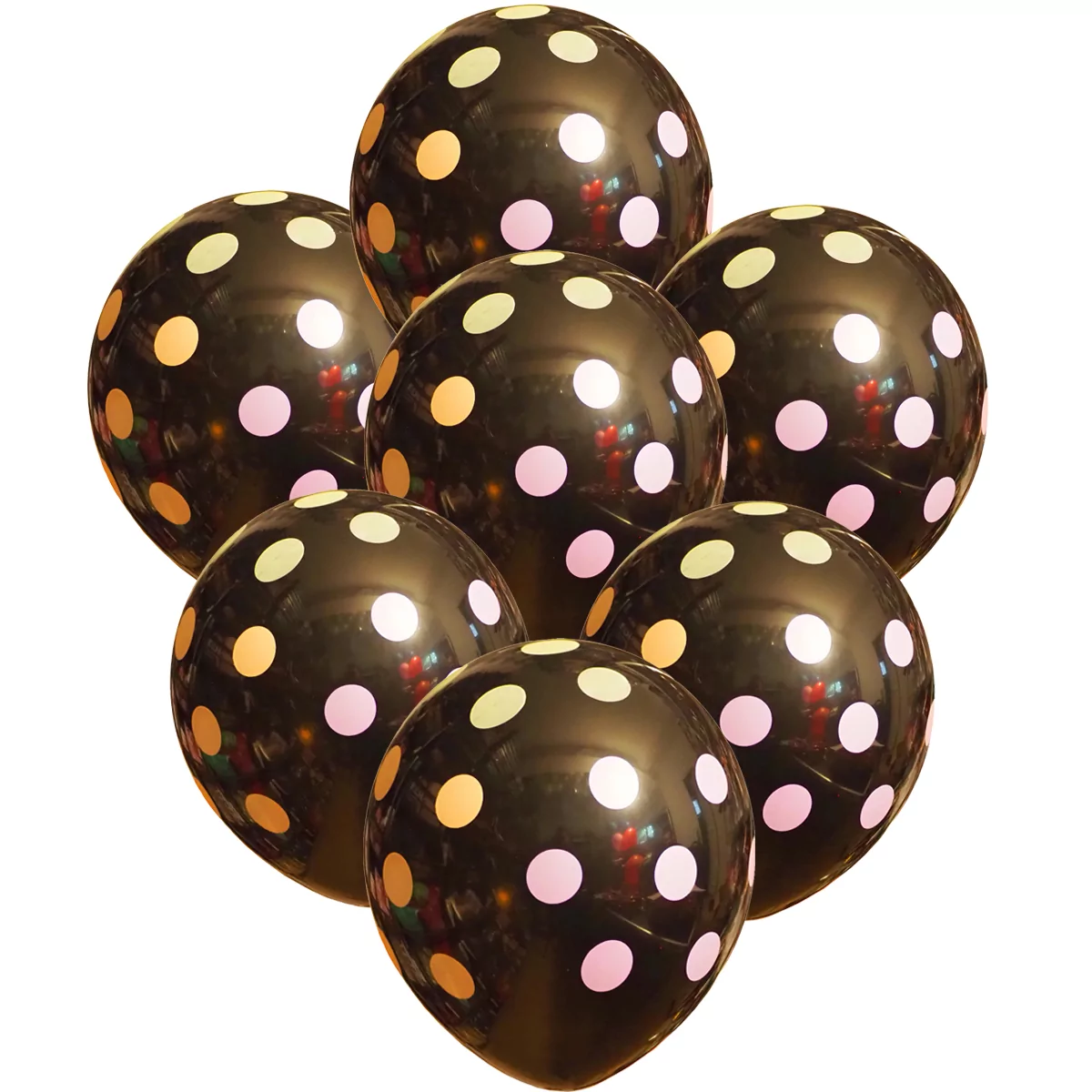 Set 6 baloane latex, negru cu buline multicolore, 30 cm