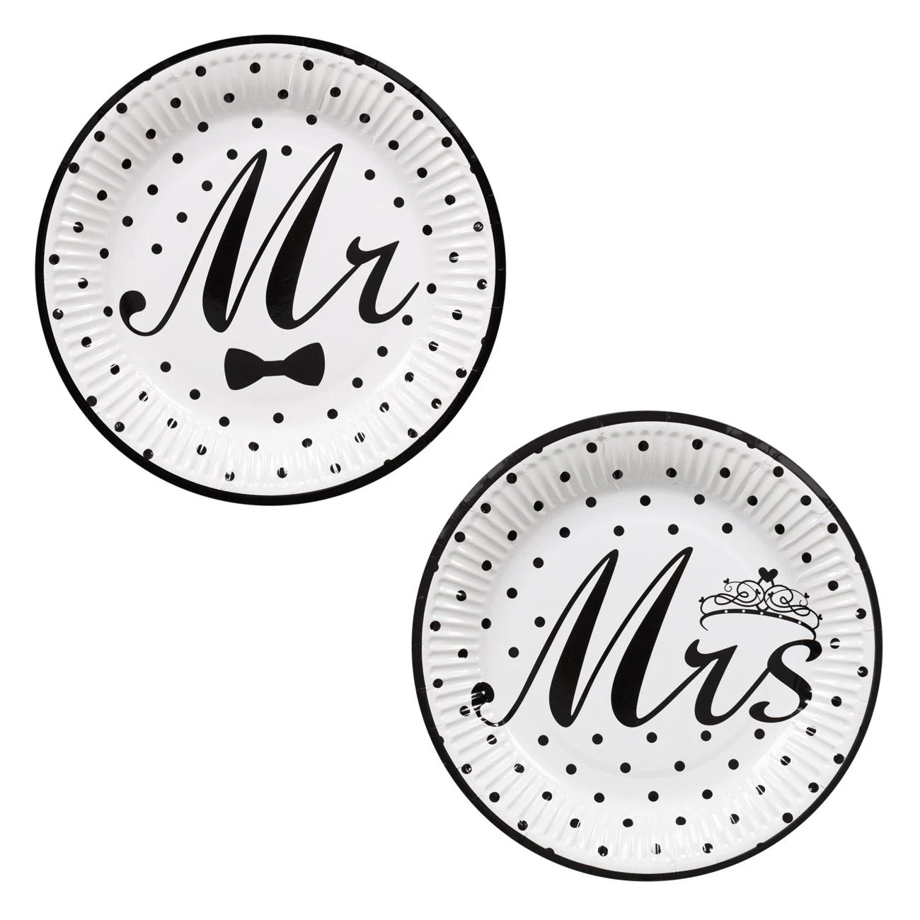 Set 6 farfurii petrecere nunta Mr & Mrs, 18 cm