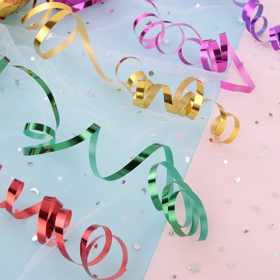 Setul de 6 role panglica decorativa reprezinta un accesoriu de baza ce ajuta la decorarea baloanelor si a spatiului pentru petrecere. Setul include 6 role de panglica decorativa cu diferite culori: rosu, verde, roz, albastru, galben si mov.