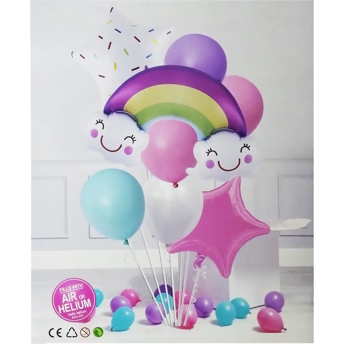 Include 3 baloane folie in forma de figurine si 5 baloane latex.