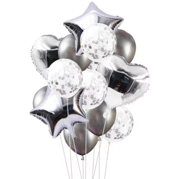 Set aranjament 14 baloane folie si latex, argintiu