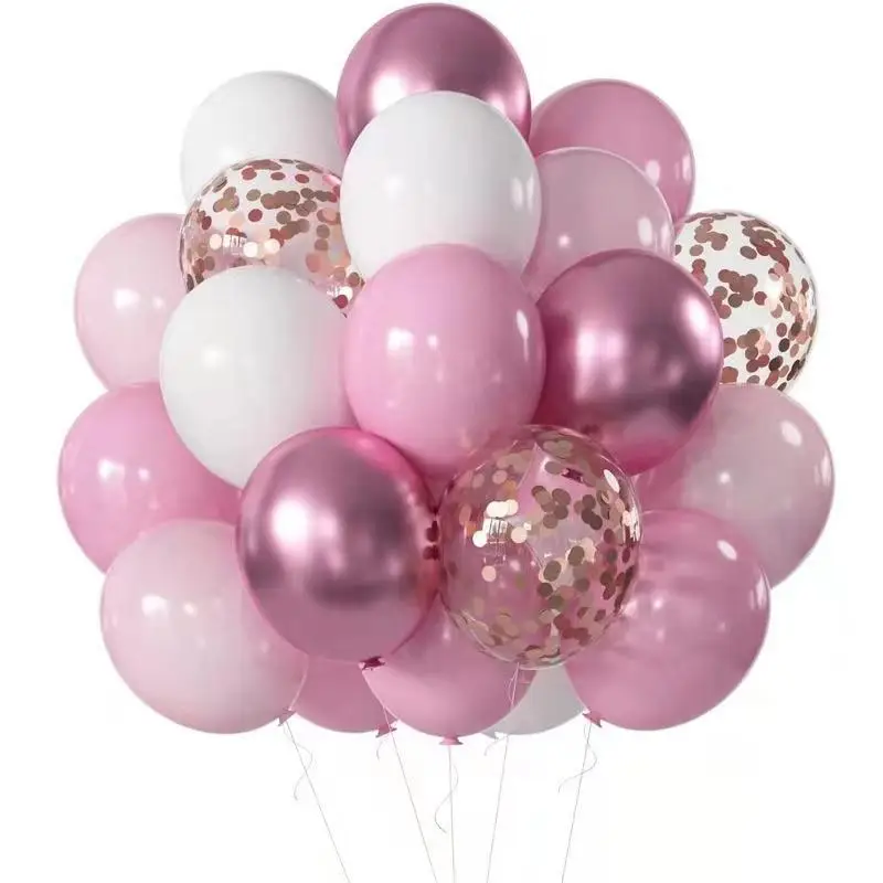 - 5 baloane latex cu confetti, rose gold, de 25 cm