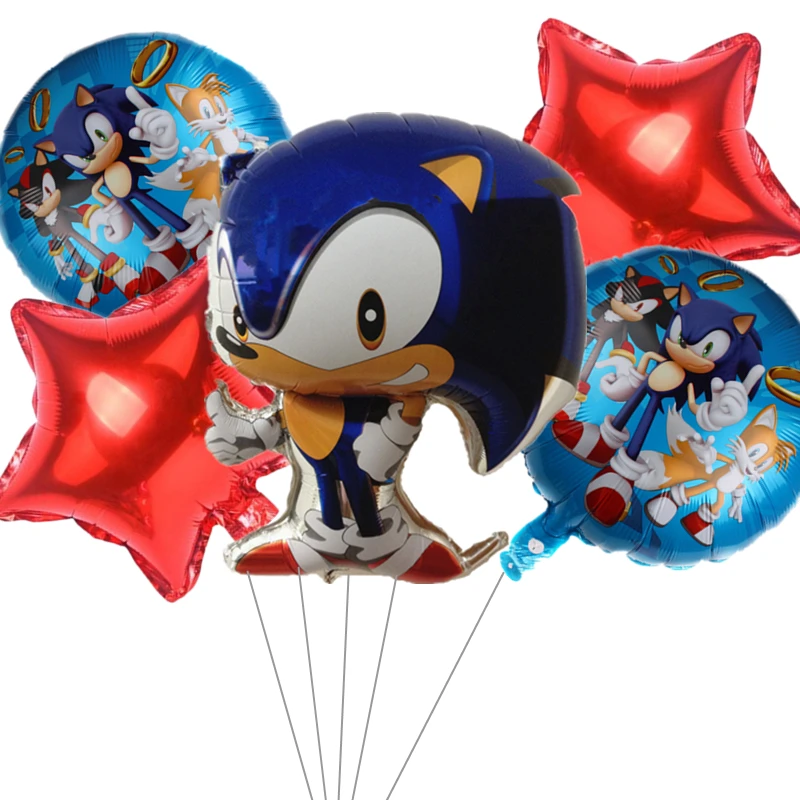 Set aranjament 5 baloane folie Sonic cu stelute rosii