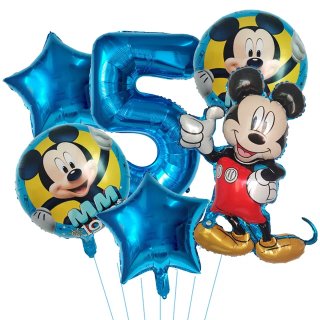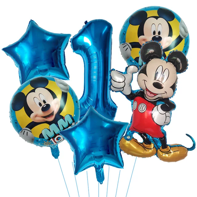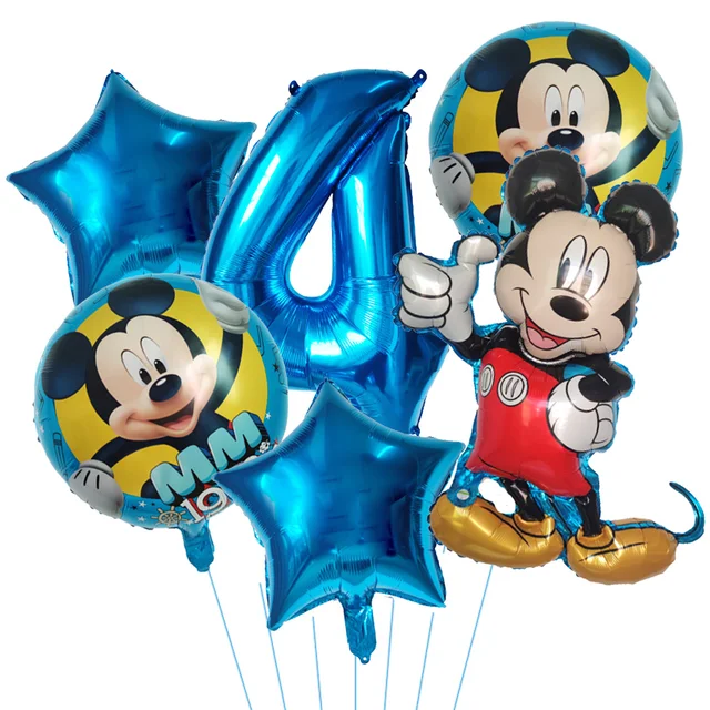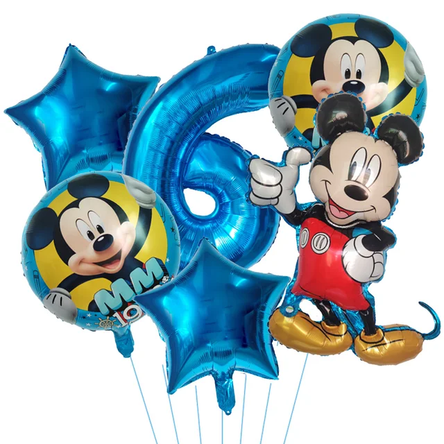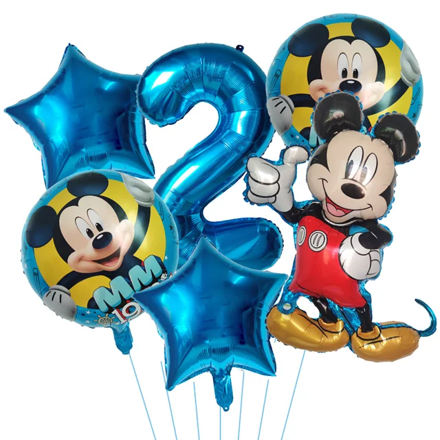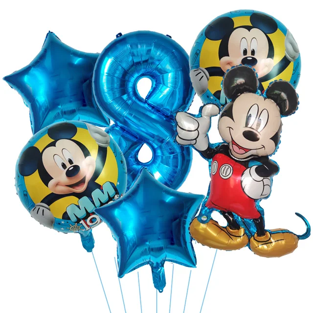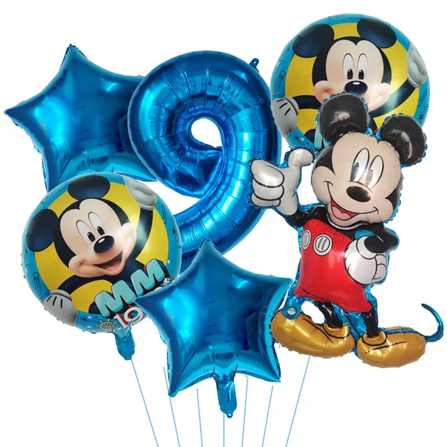 Set aranjament 6 baloane folie cu Cifra si figurina Mickey Mouse, albastru, bundle