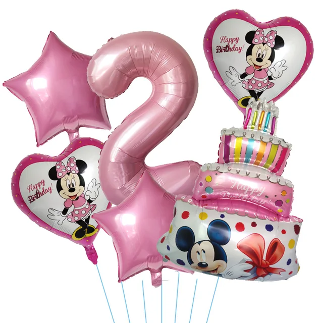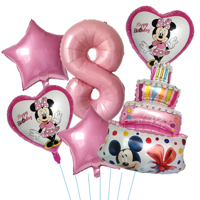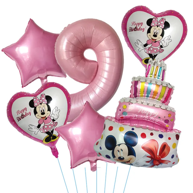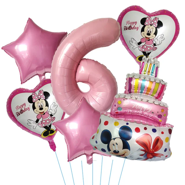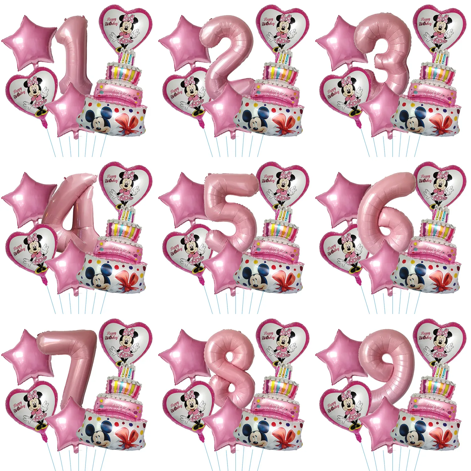 Set aranjament 6 baloane folie cu Cifra si figurina Minnie, roz, bundle.