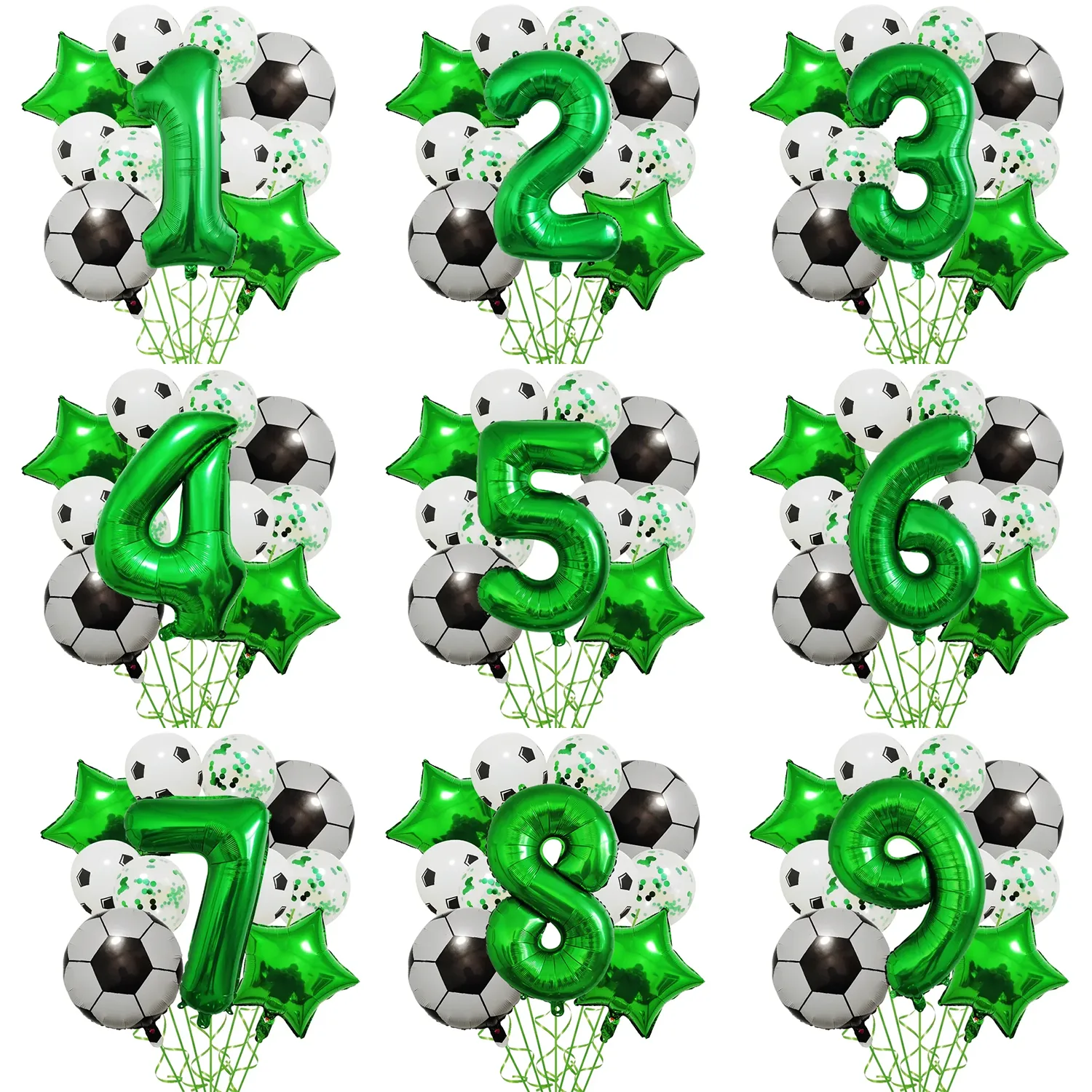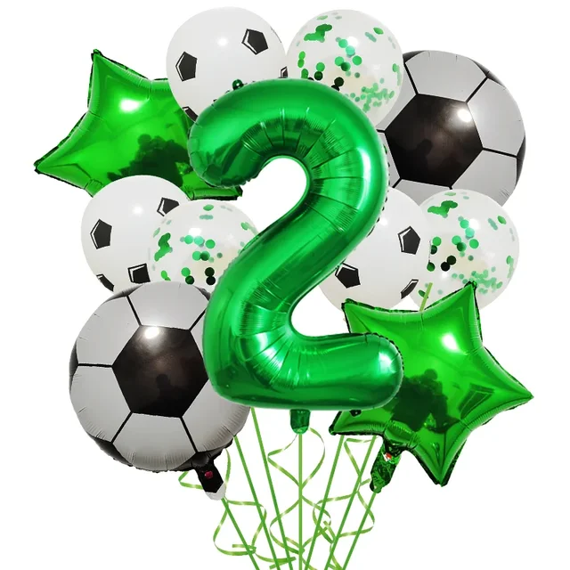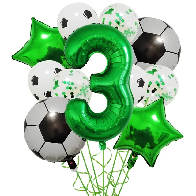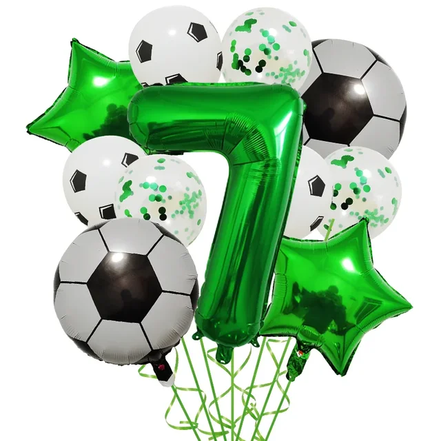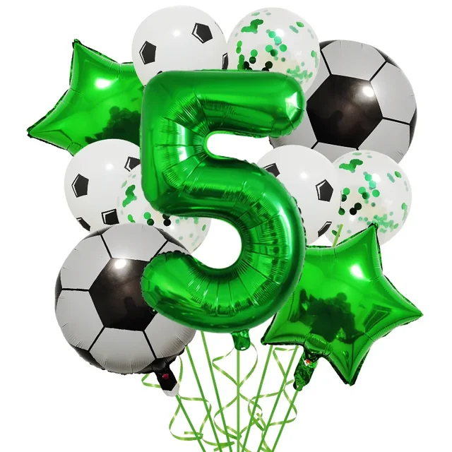 Set aranjament 6 baloane folie cu Cifra, tematica Fotbal / Ball Party, verde, bundle