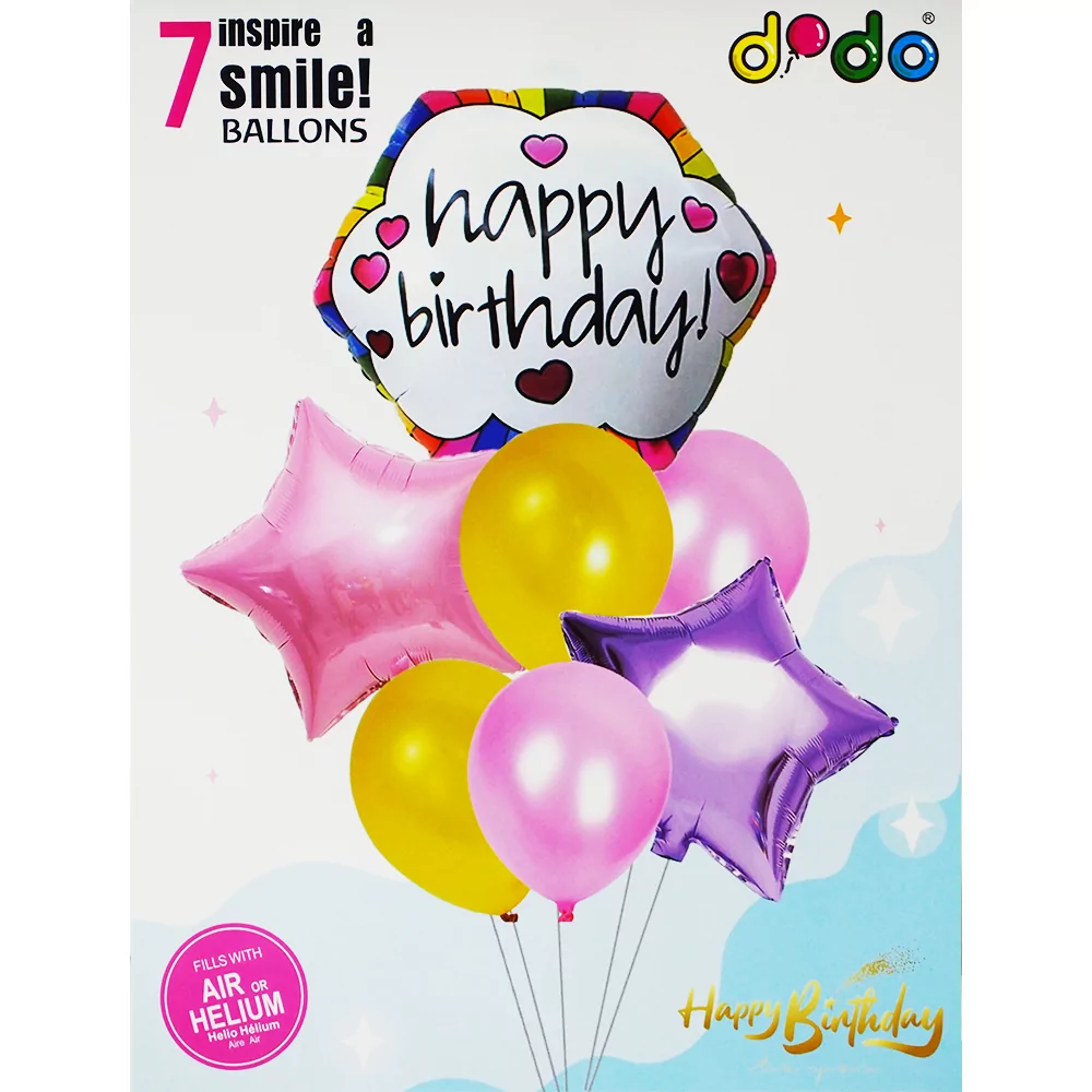 Set aranjament 7 baloane folie si latex cu hexagon Happy Birthday, roz