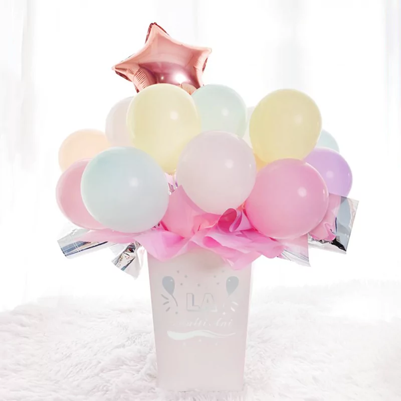 Set aranjament buchet 23 baloane pastelate, in cutie, cu mesaj La Multi Ani