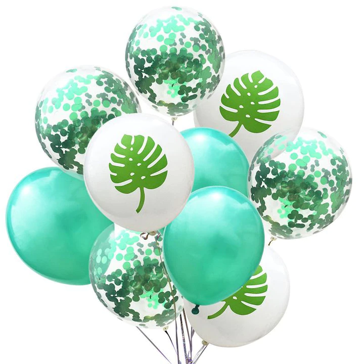 Set aranjament bundle 10 baloane latex frunze si confetti verde