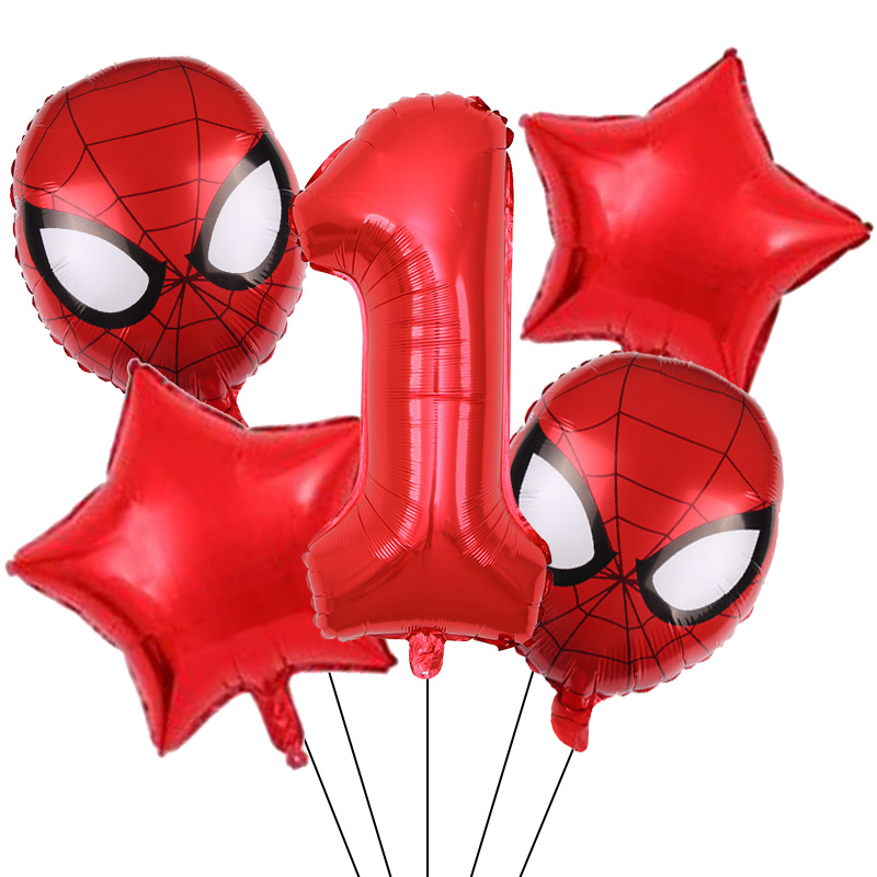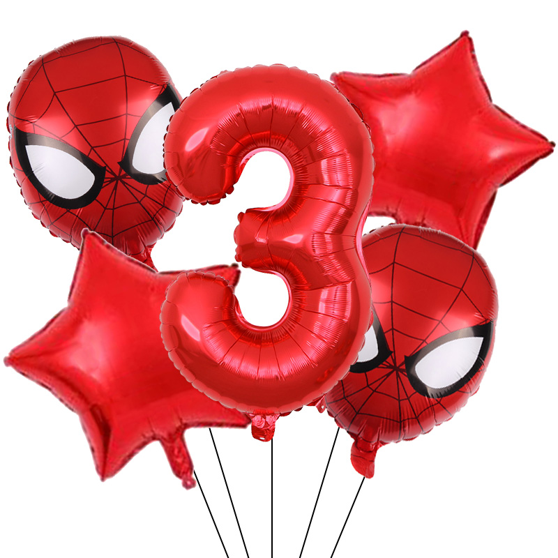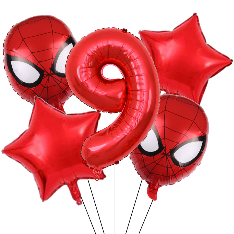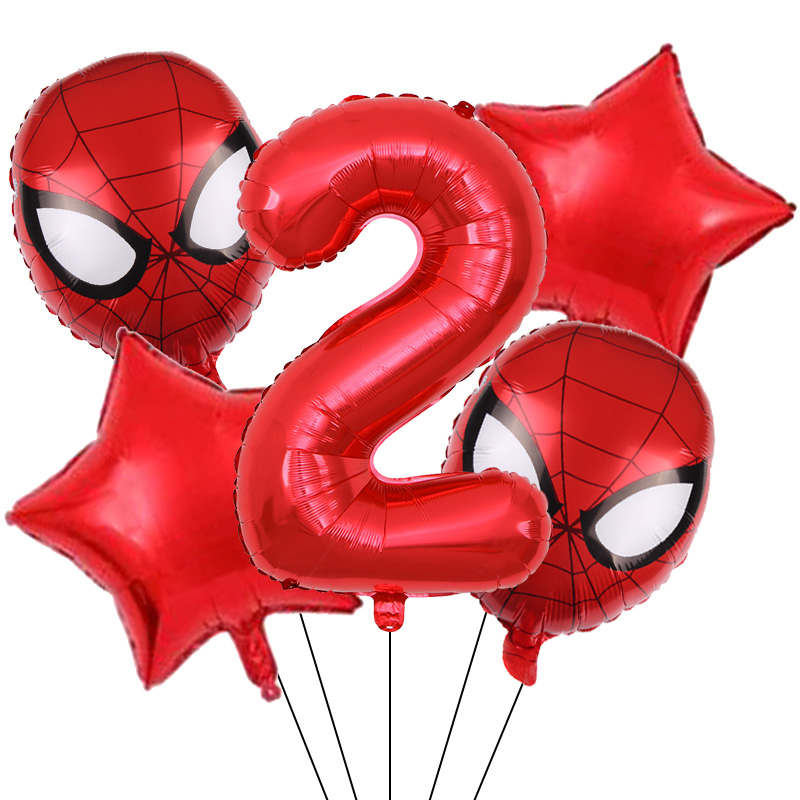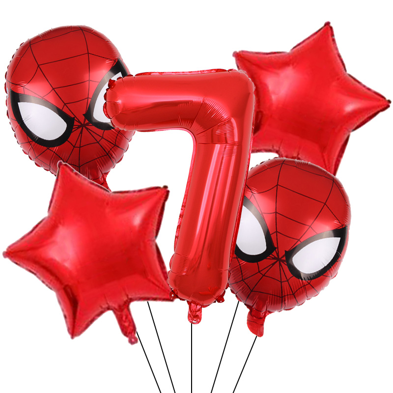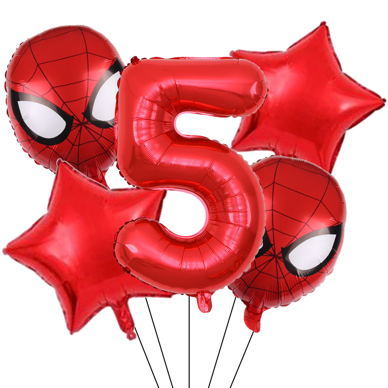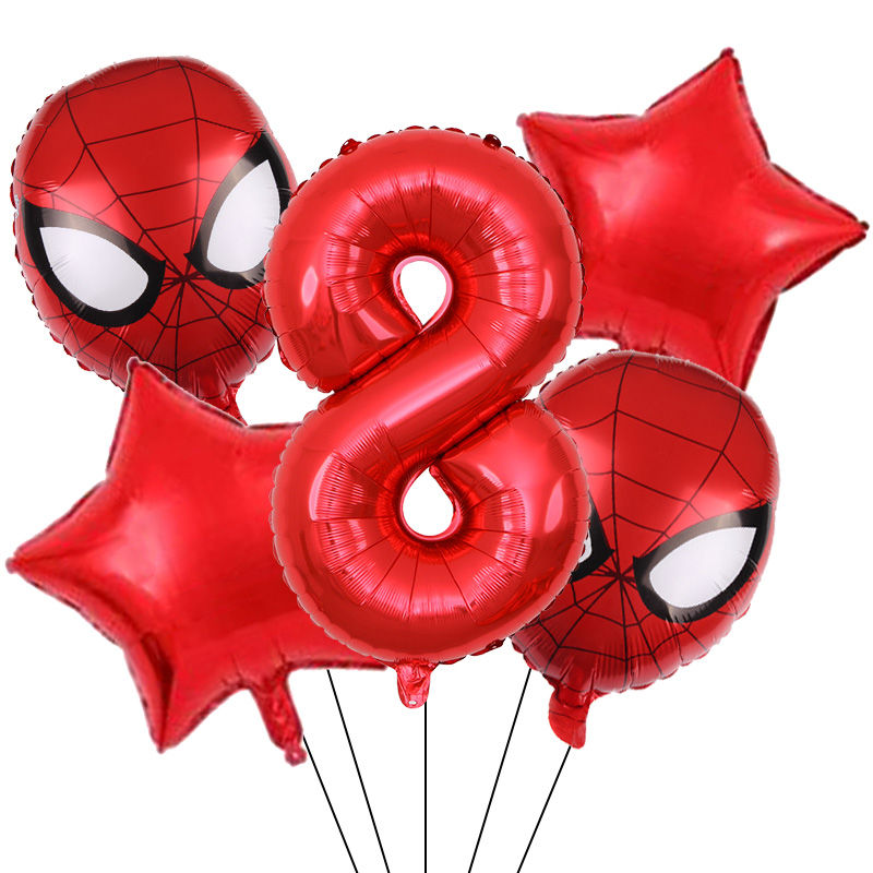 Set aranjament bundle 5 baloane figurina Spiderman, cu Cifra 100 cm, rosie