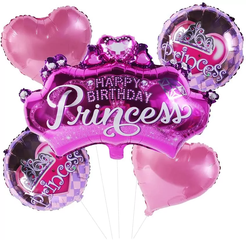 Set aranjament bundle 5 baloane folie Happy Birthday Princess
