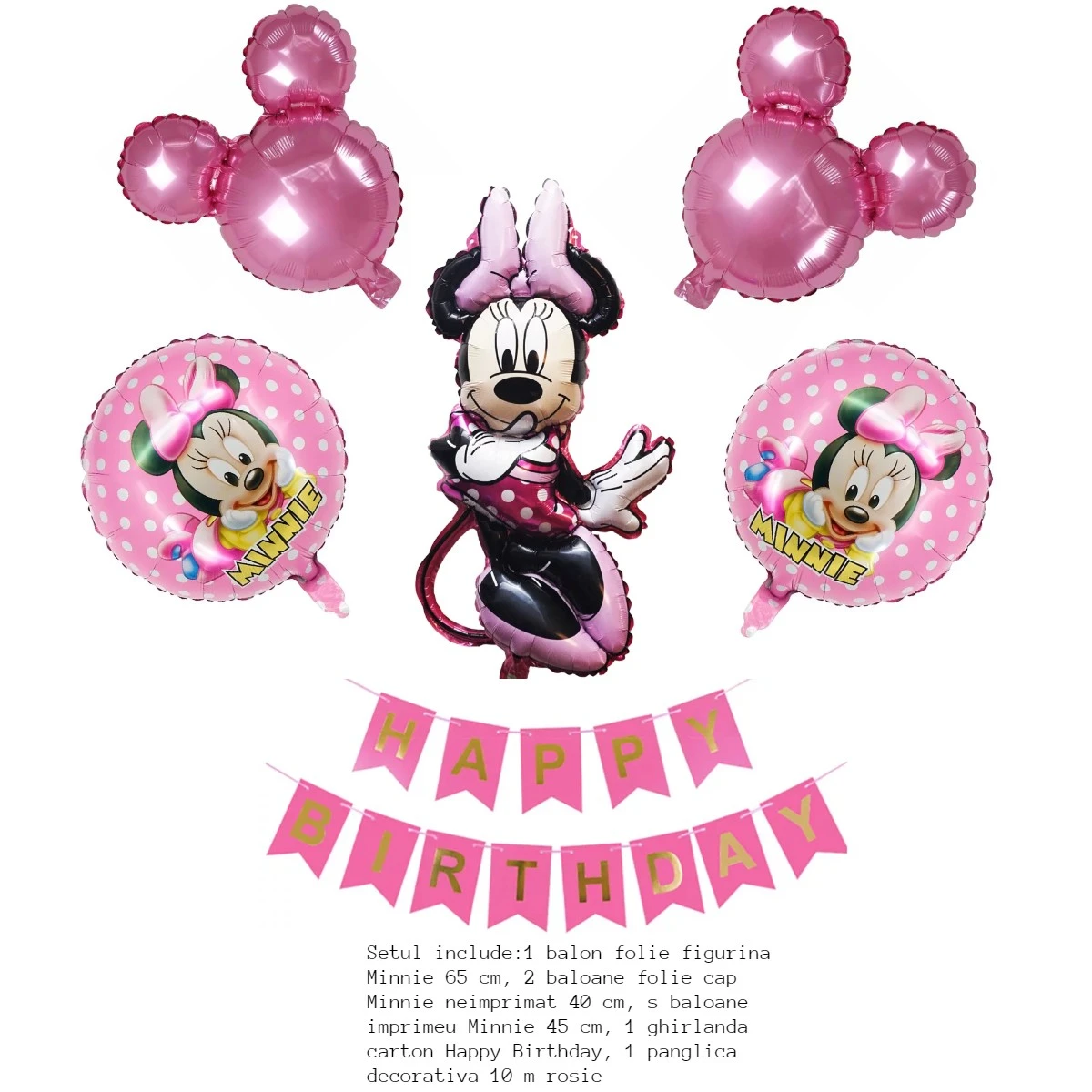 Set aranjament bundle 7 baloane folie Minnie cu ghirlanda Happy Birthday Roz