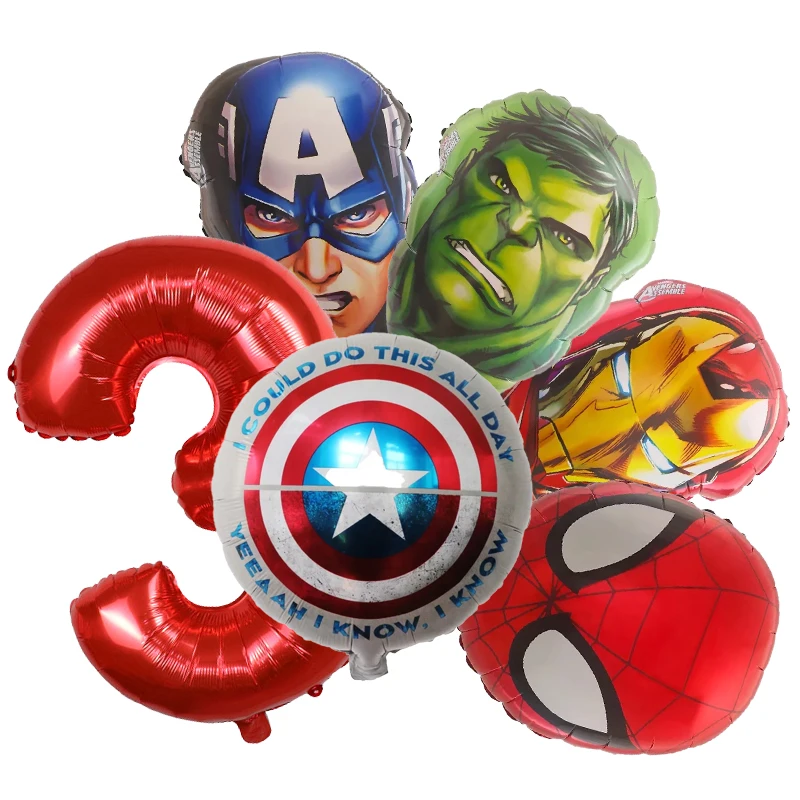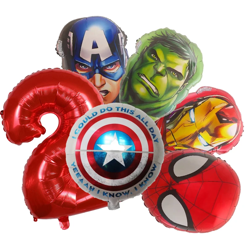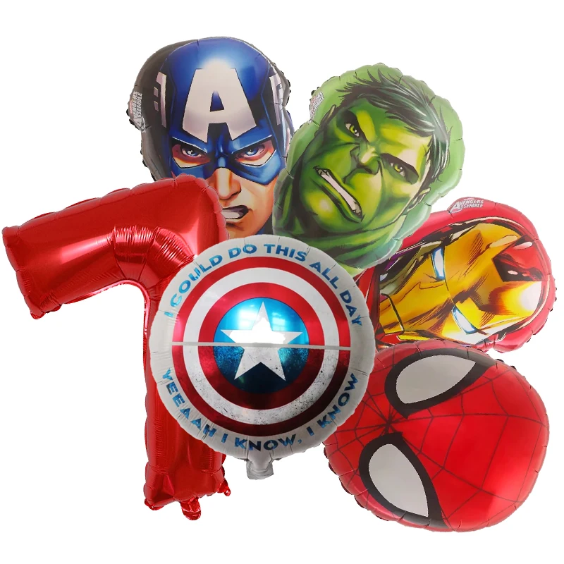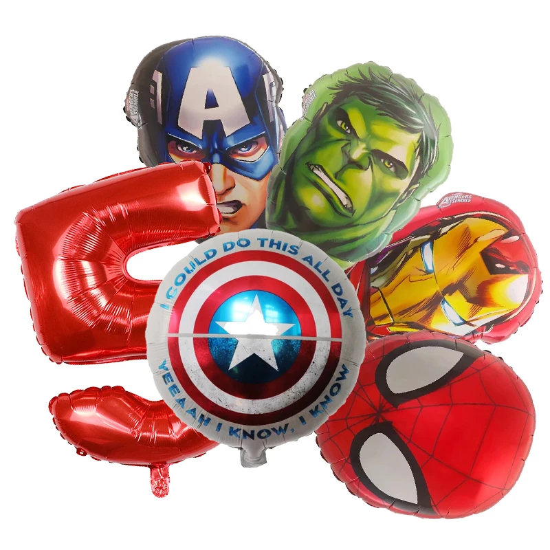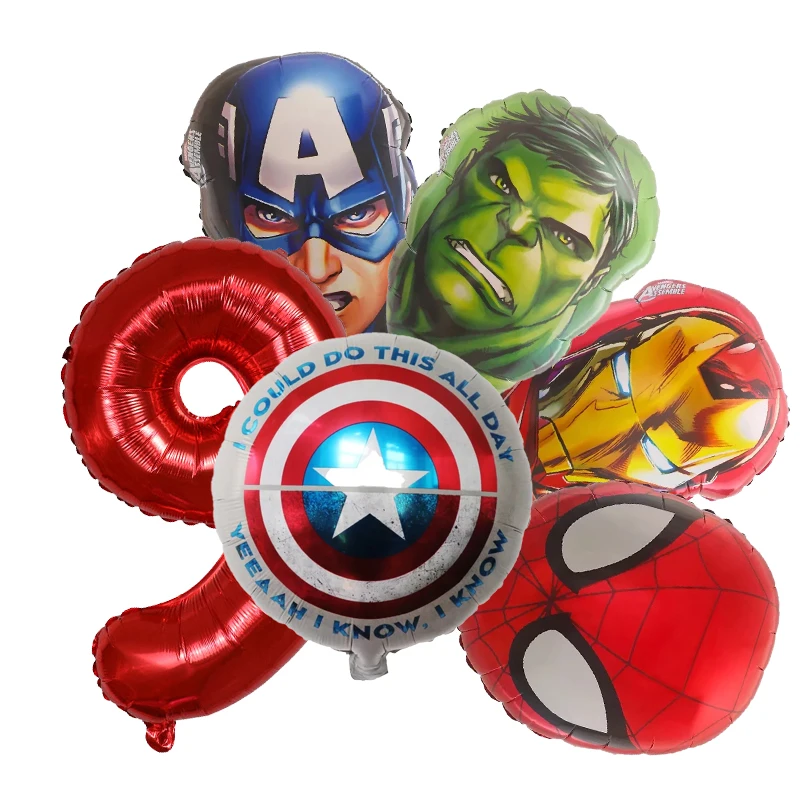 Set aranjament bundle 6 baloane folie supereroi cu cifra rosie