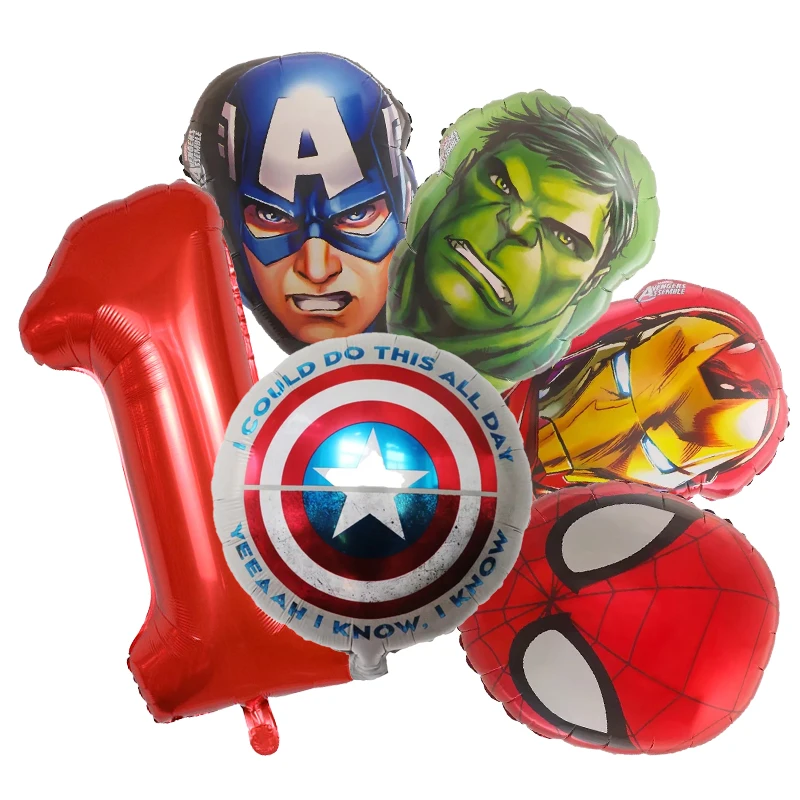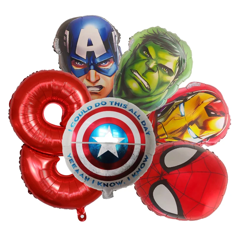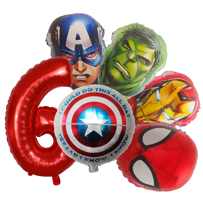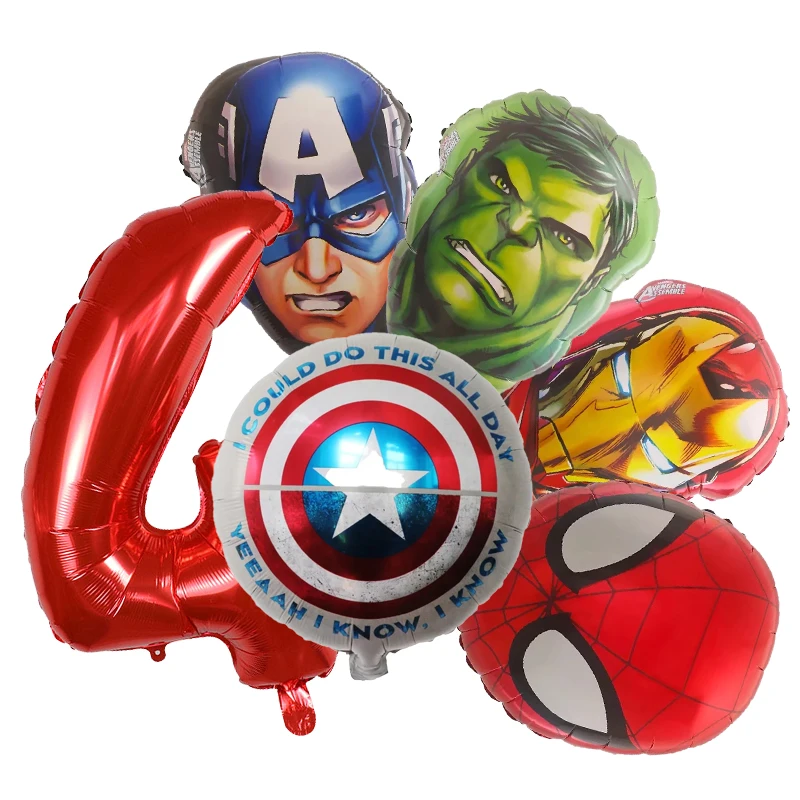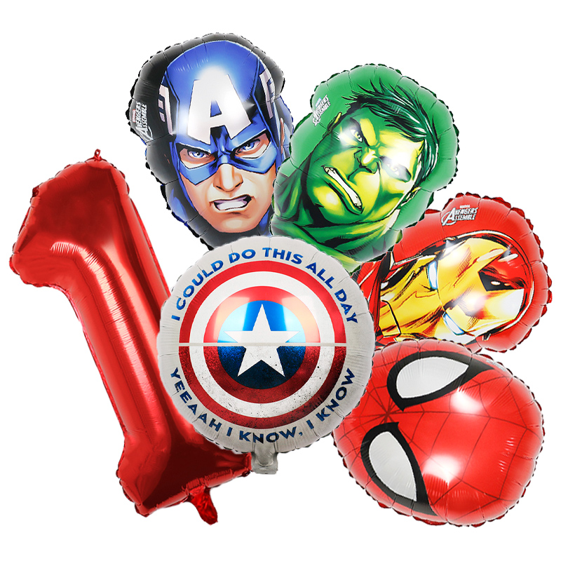 Set aranjament bundle 6 baloane folie supereroi cu cifra rosie