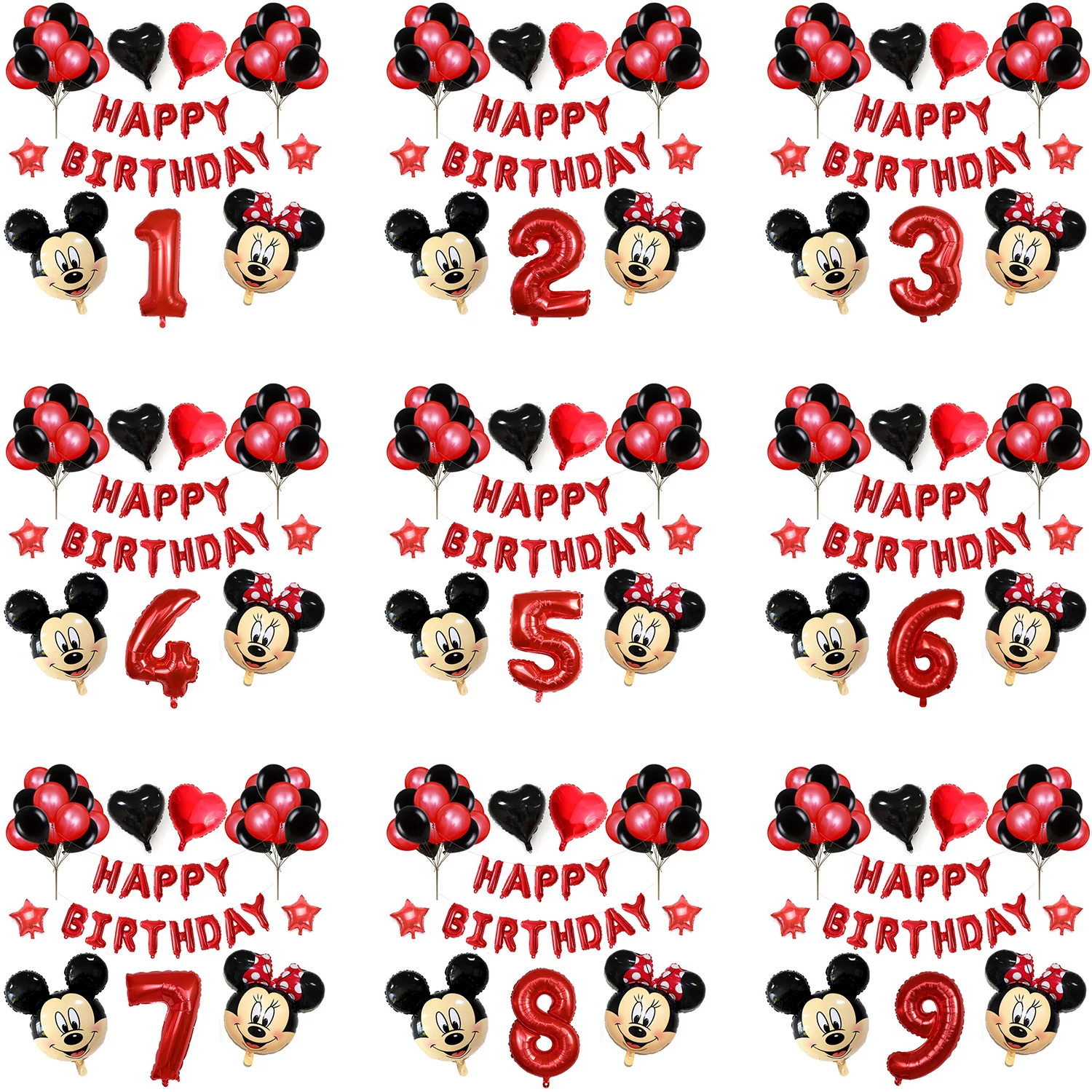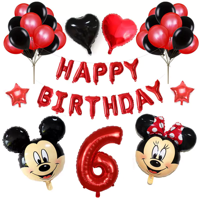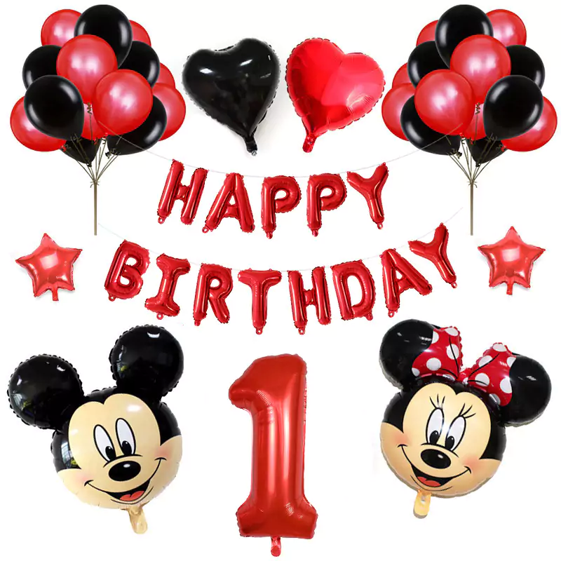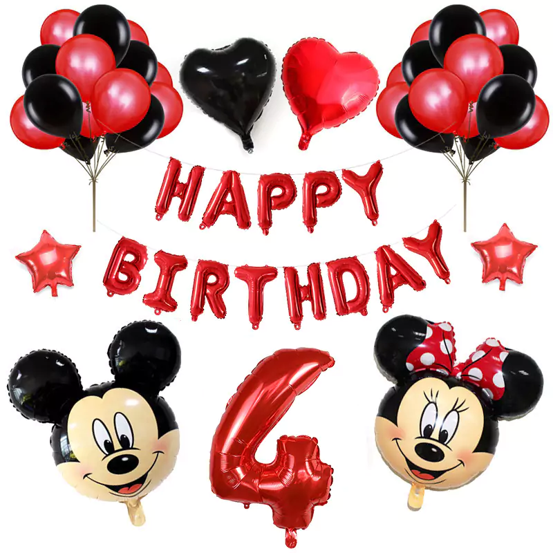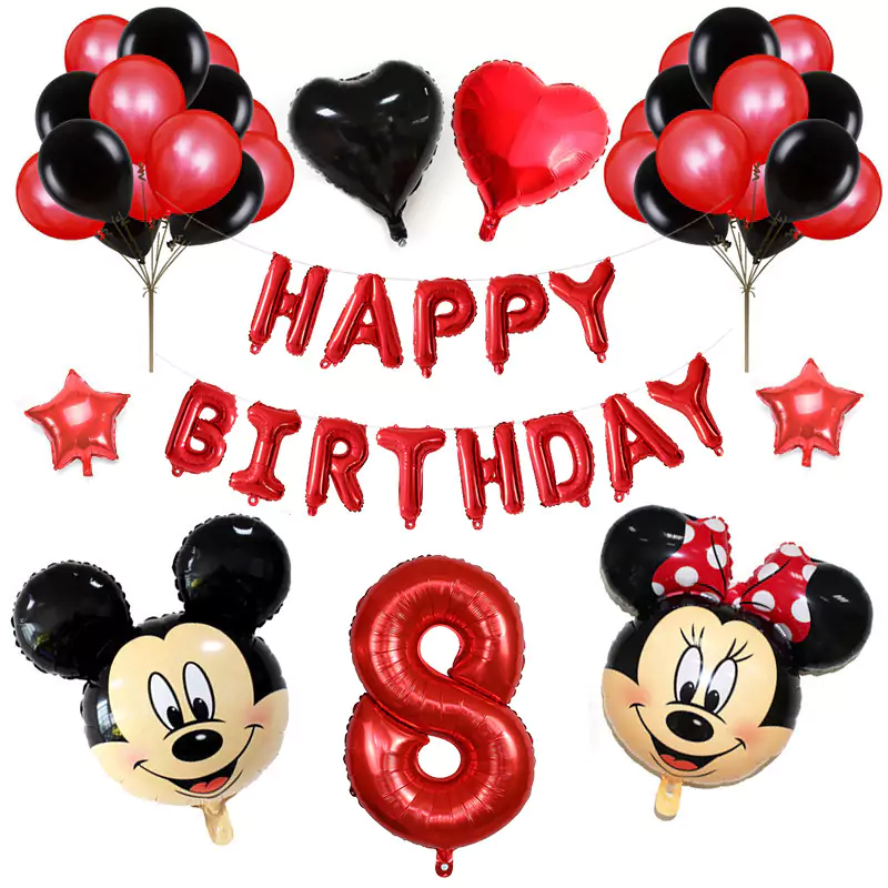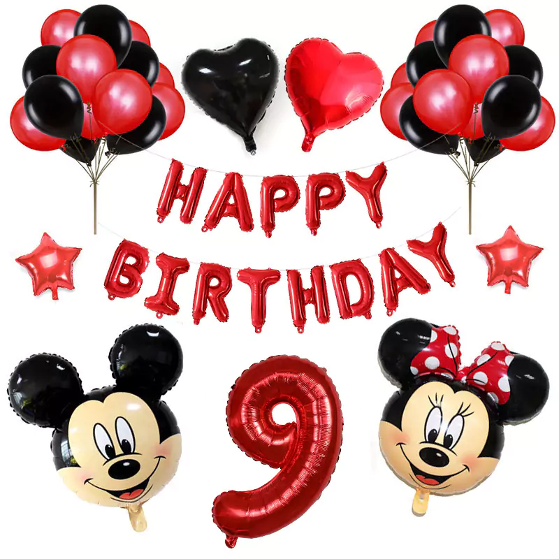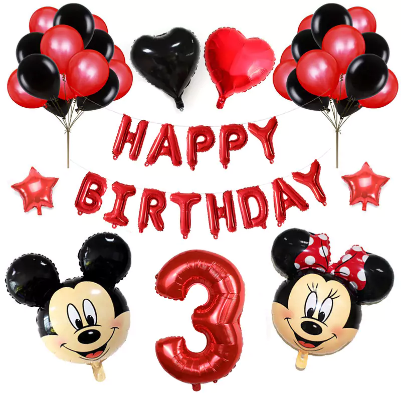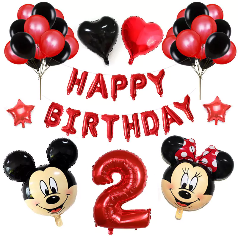 Set aranjament bundle aniversar cu 36 baloane, cu Mickey si Minnie, cu Cifra 100 cm