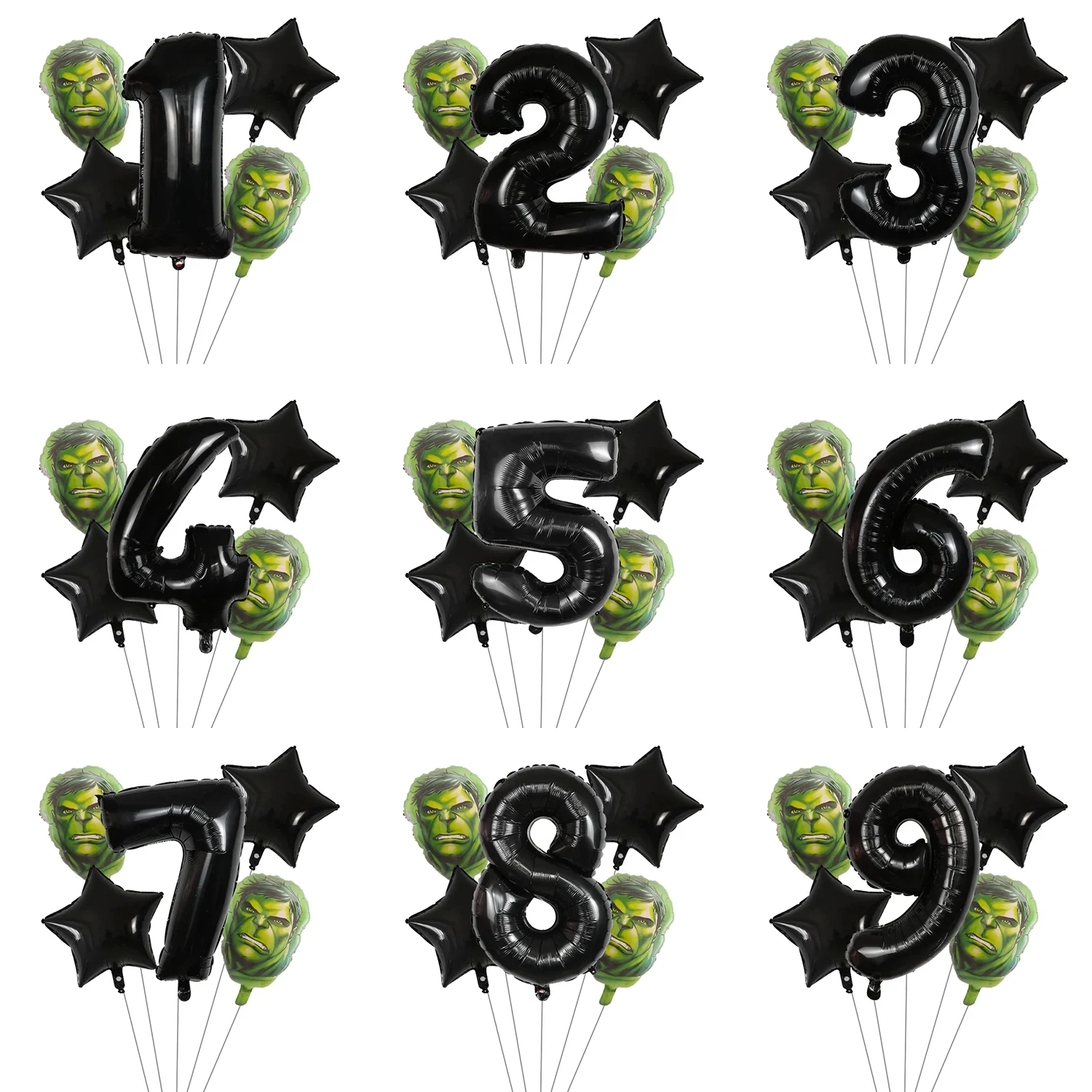 Set aranjament bundle cu cifra neagra si figurina cap Hulk verde