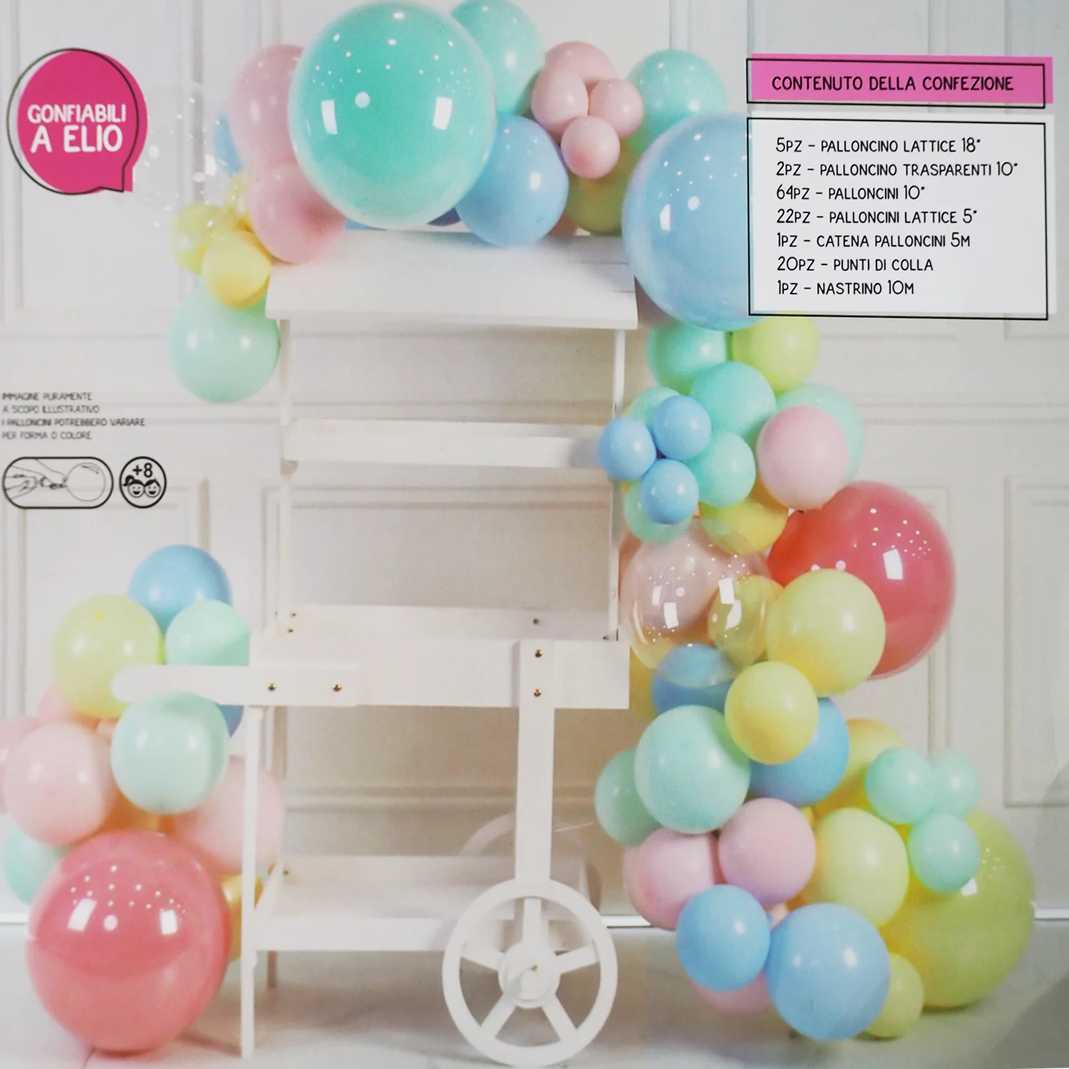 Set arcada baloane roz, turcoaz, galben, 93 baloane