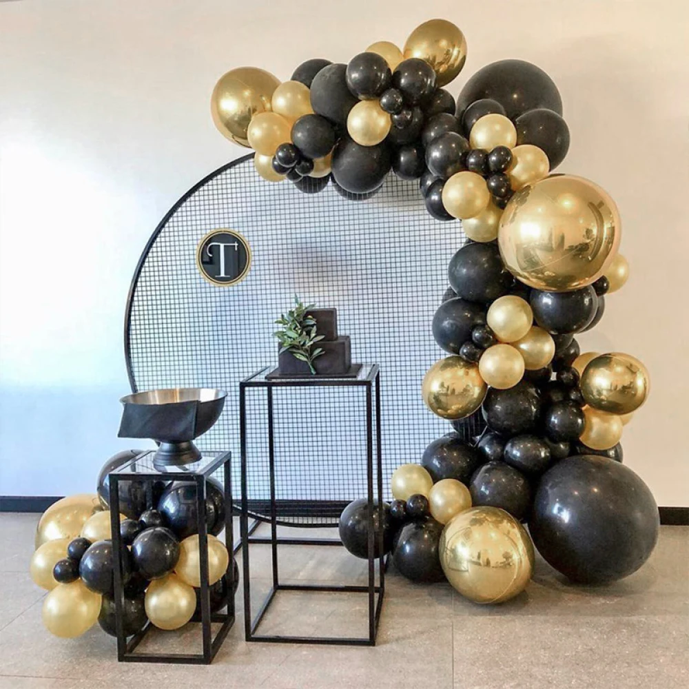 Set arcada cu 100 de baloane latex in culori negru cu auriu