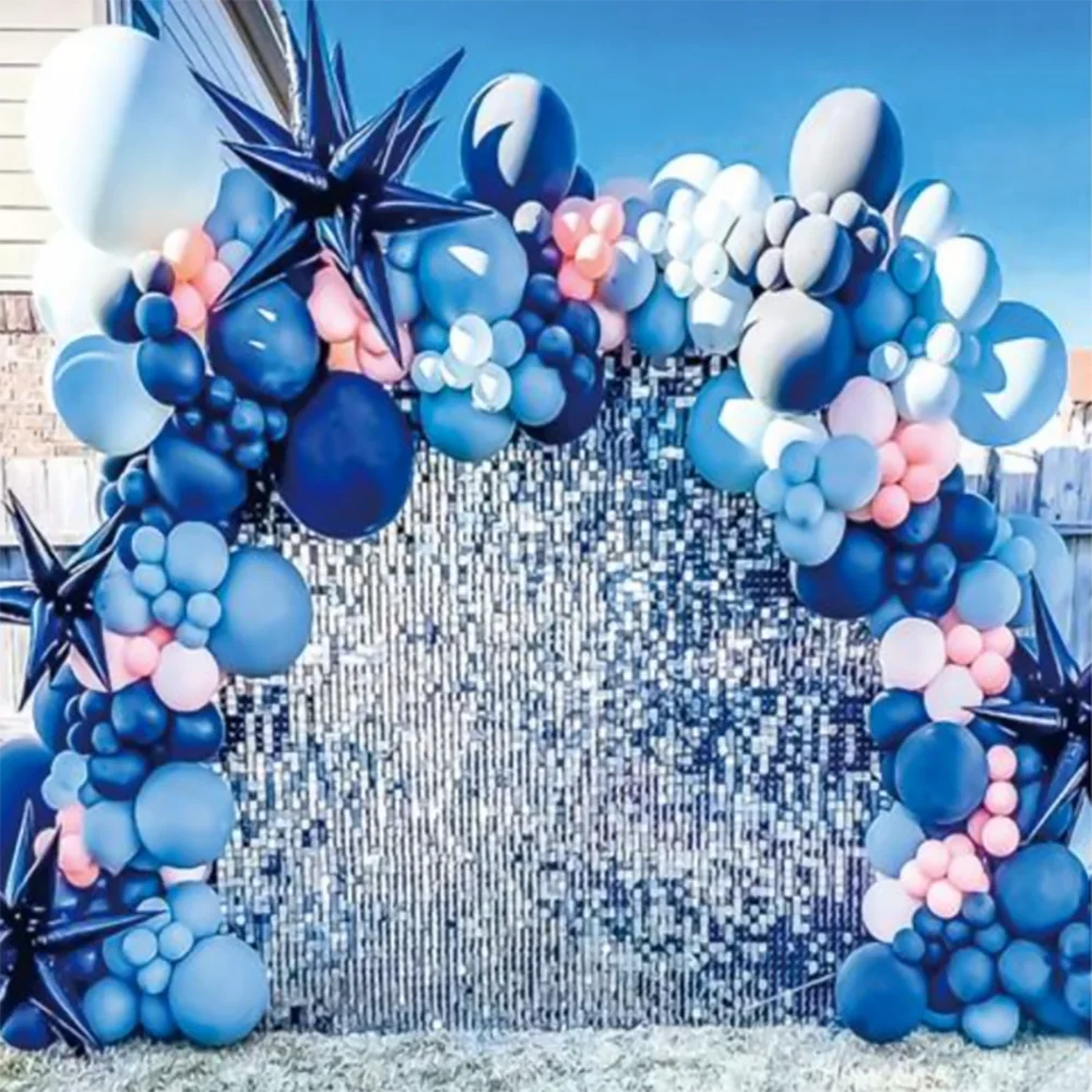 Set arcada cu 94 baloane in culori albastre si roz cu stelute 3D albastre