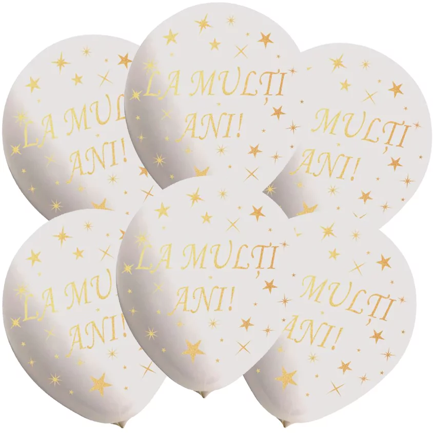 Set bundle 10 baloane latex La Multi Ani, albe cu scris auriu, 30 cm