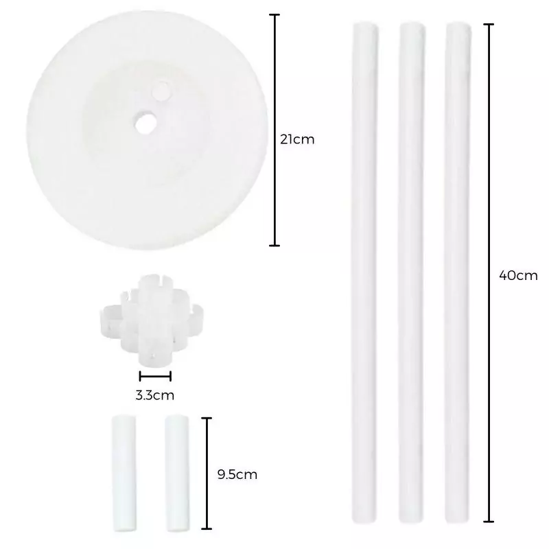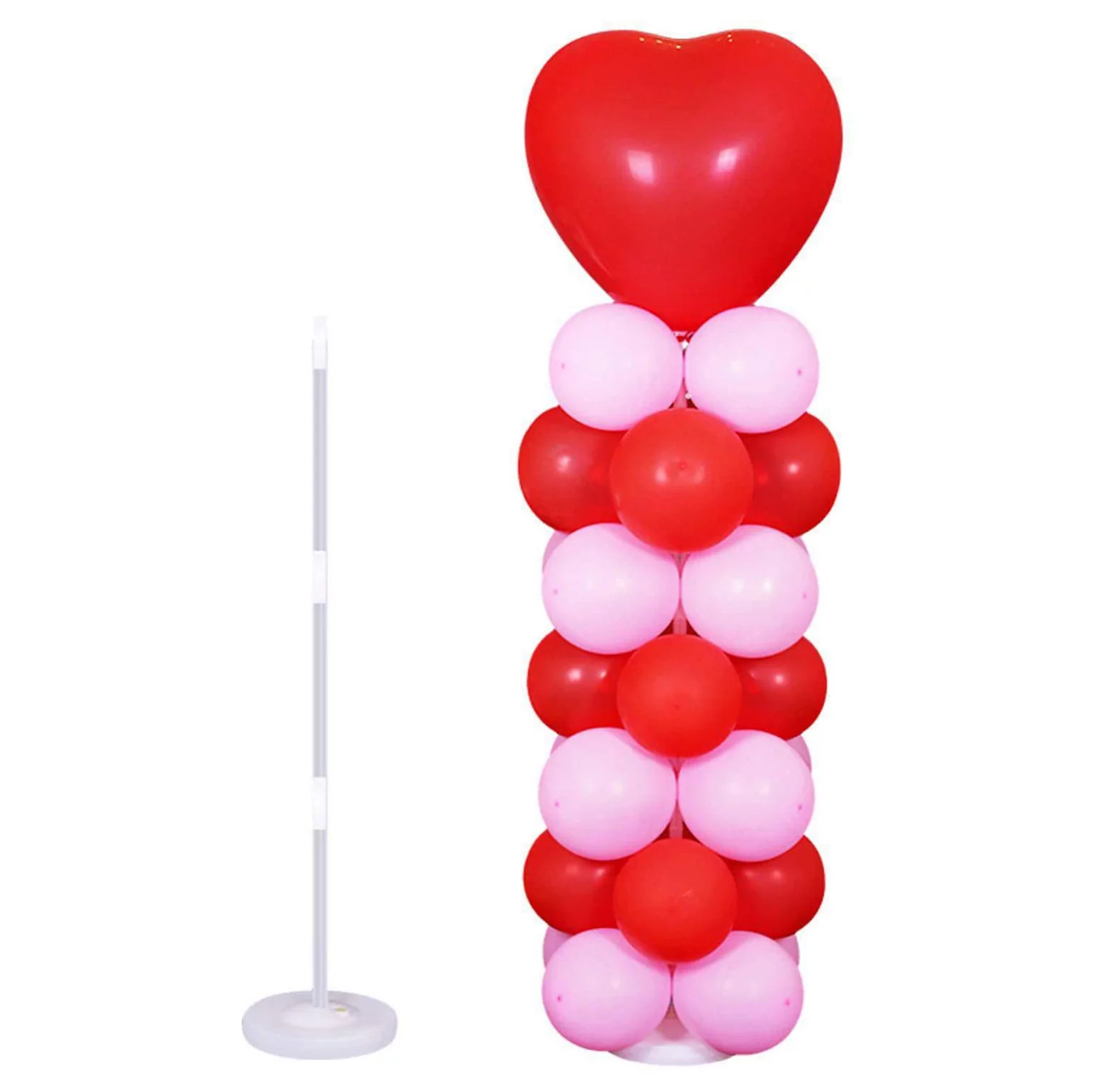 Setul include baza, 4 tuburi transparente din plastic, 4 conectori pentru imbinarea tuburilor si a bazei si 5 cleme rotunde pentru baloane.