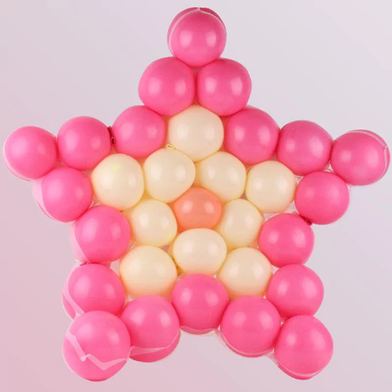 Suportul tip plasa pentru aranjament baloane in forma de steluta are inaltimea de 60 cm si reprezinta un accesoriu pentru petrecere care poate ajuta la realizarea unui aranjament de baloane simplu si de efect. Acest suport in forma de steluta se poate comanda, spre exemplu, impreuna cu baloane colorate simple, pentru a crea un decor similar cu cel din imaginea de prezentare. Baloanele nu sunt incluse in pachet.