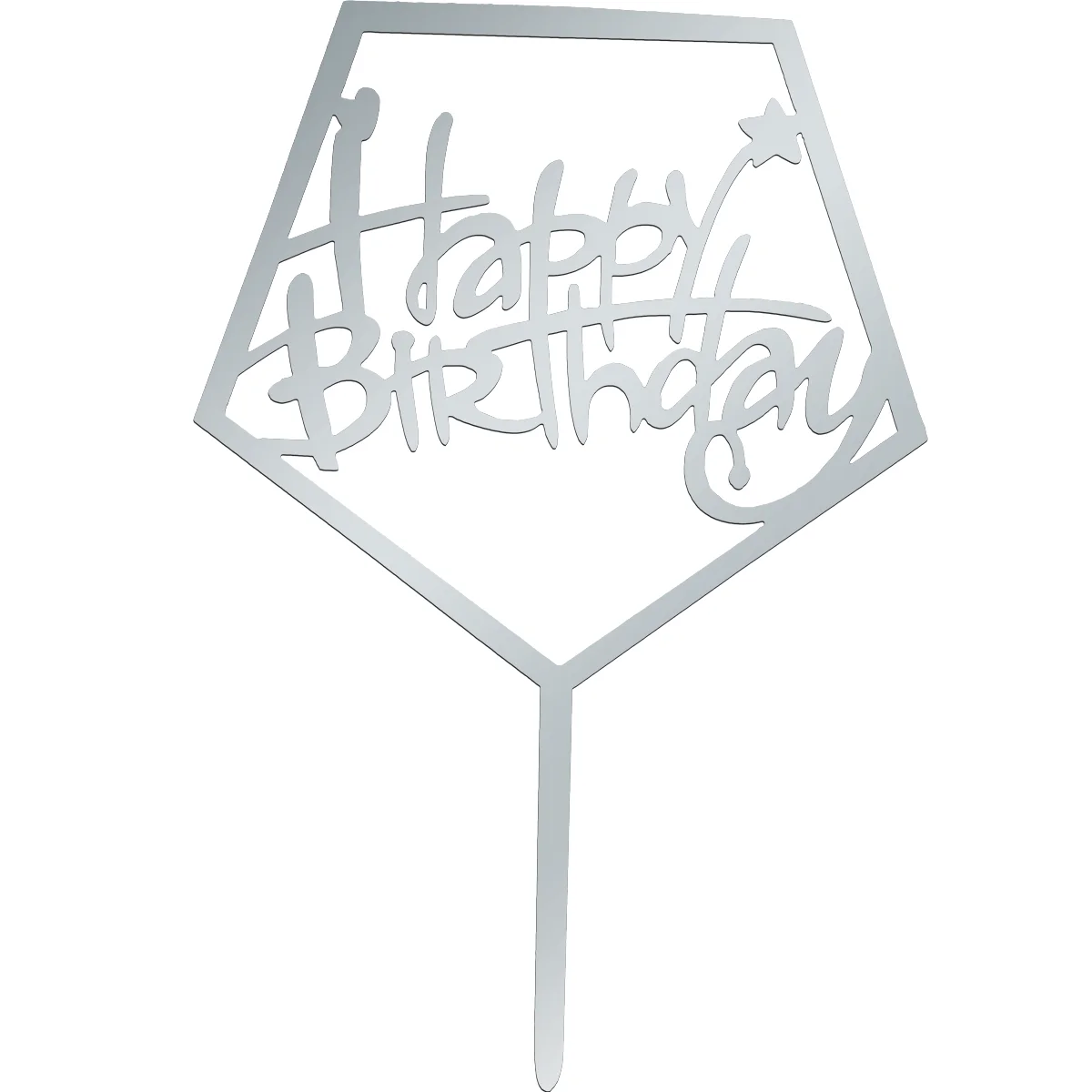 Topper Happy Birthday argintiu, 19 cm