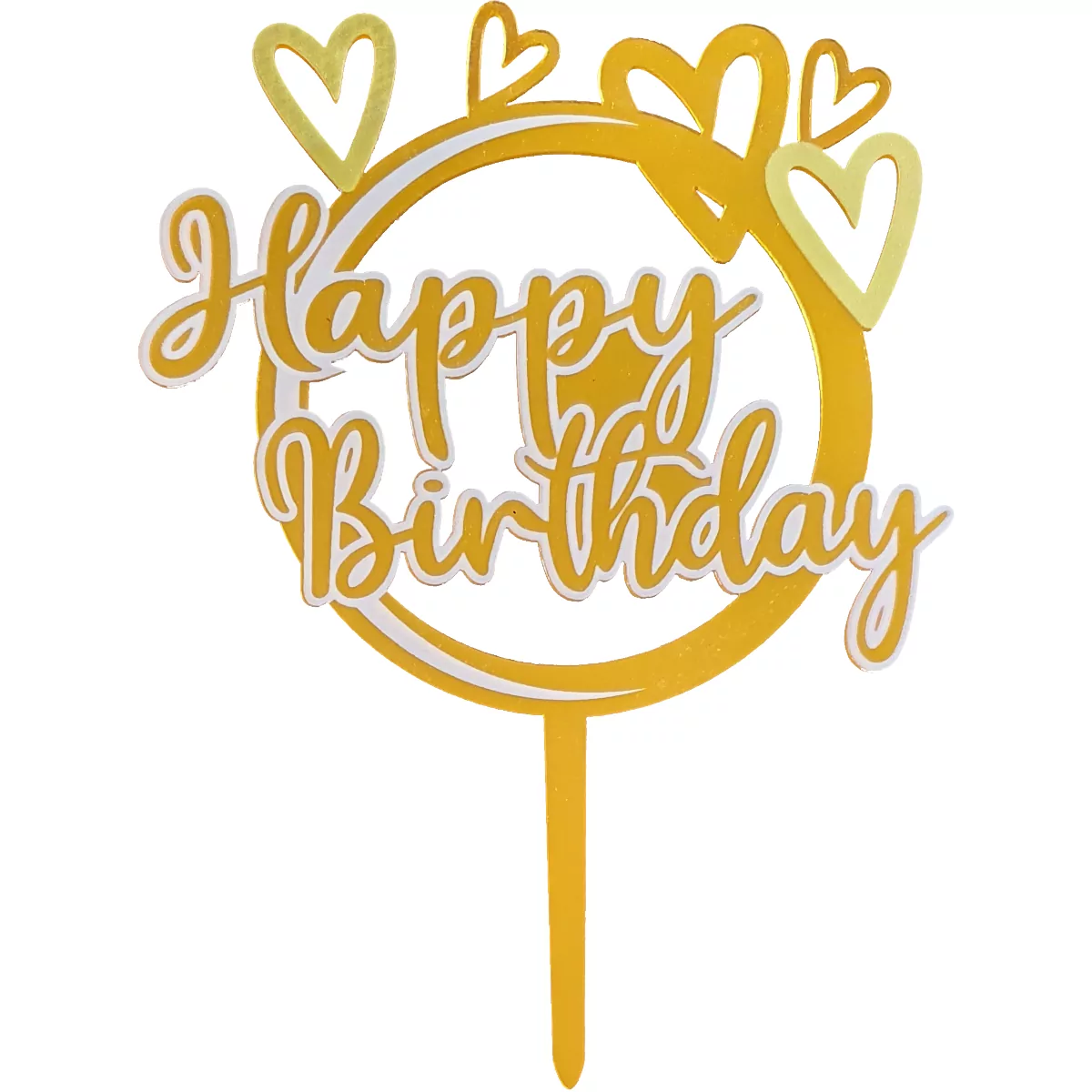 Topper tort Happy Birthday Auriu cu inimioare